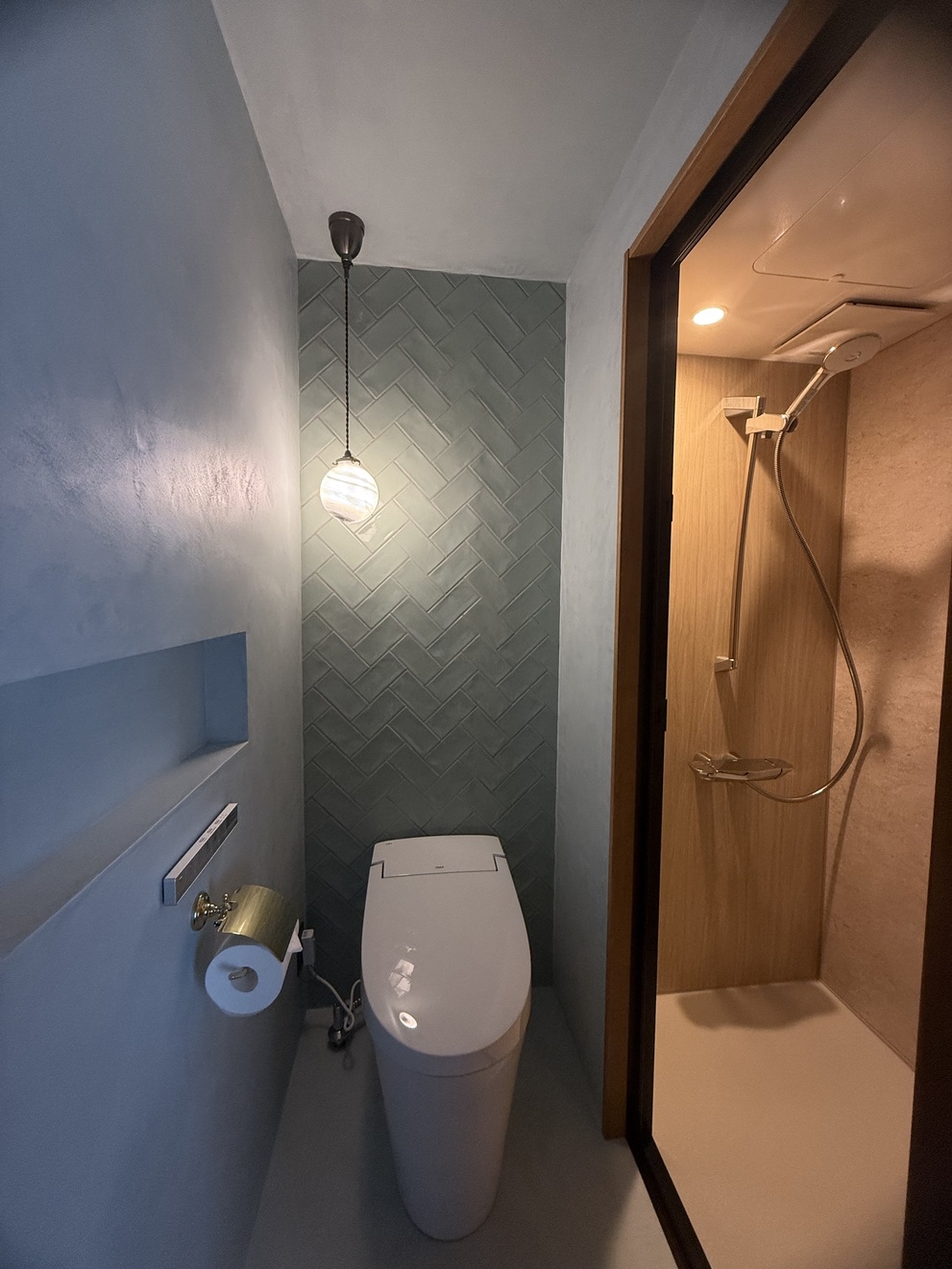 ユニットバスからシャワールーム・トイレ別になり広々と快適に、清潔感のある空間に生まれ変わりました!