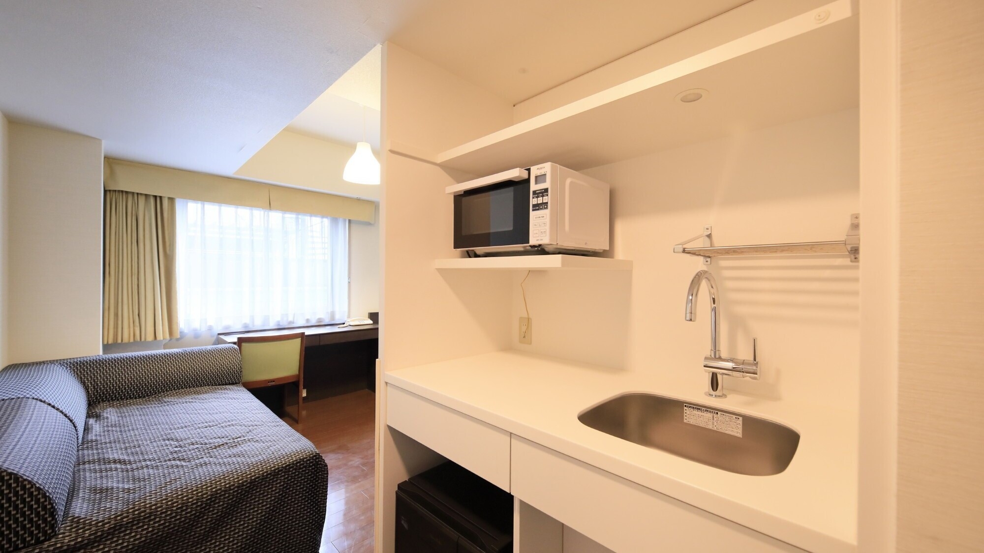 ■カップル・ファミリー向け長期滞在型のお部屋 ■広さ:25平米■ベッド:シモンズ製 ■ミニキッチン付(コンロ無し)■電子レンジあり