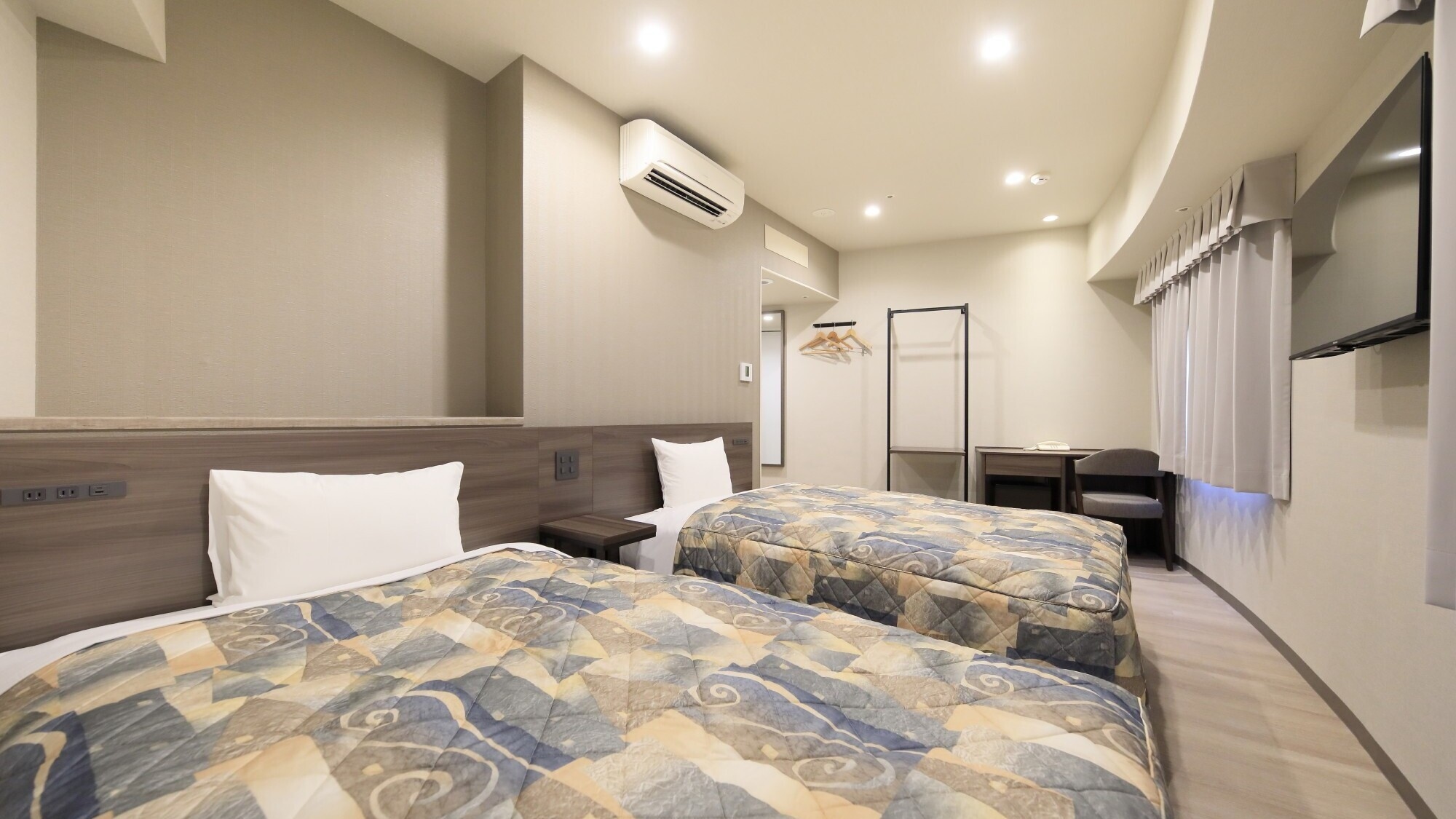 多目的でご利用頂けるシンプルなお部屋 ■広さ:19-20平米 ■ベッド:シモンズ製 ■全館Wi-Fi接続無料 ■ウォシュレット完備