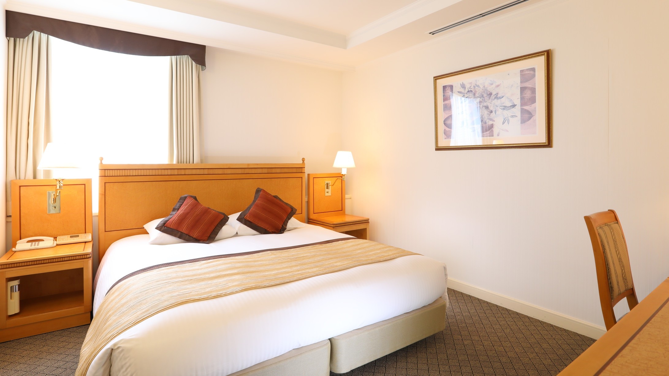160cm幅のクィーンベッドを使用、快適な寝心地をご提供いたします。(角部屋)