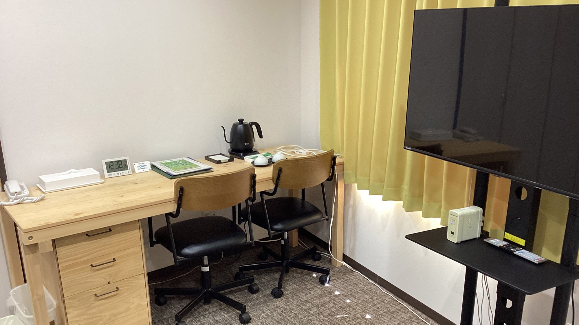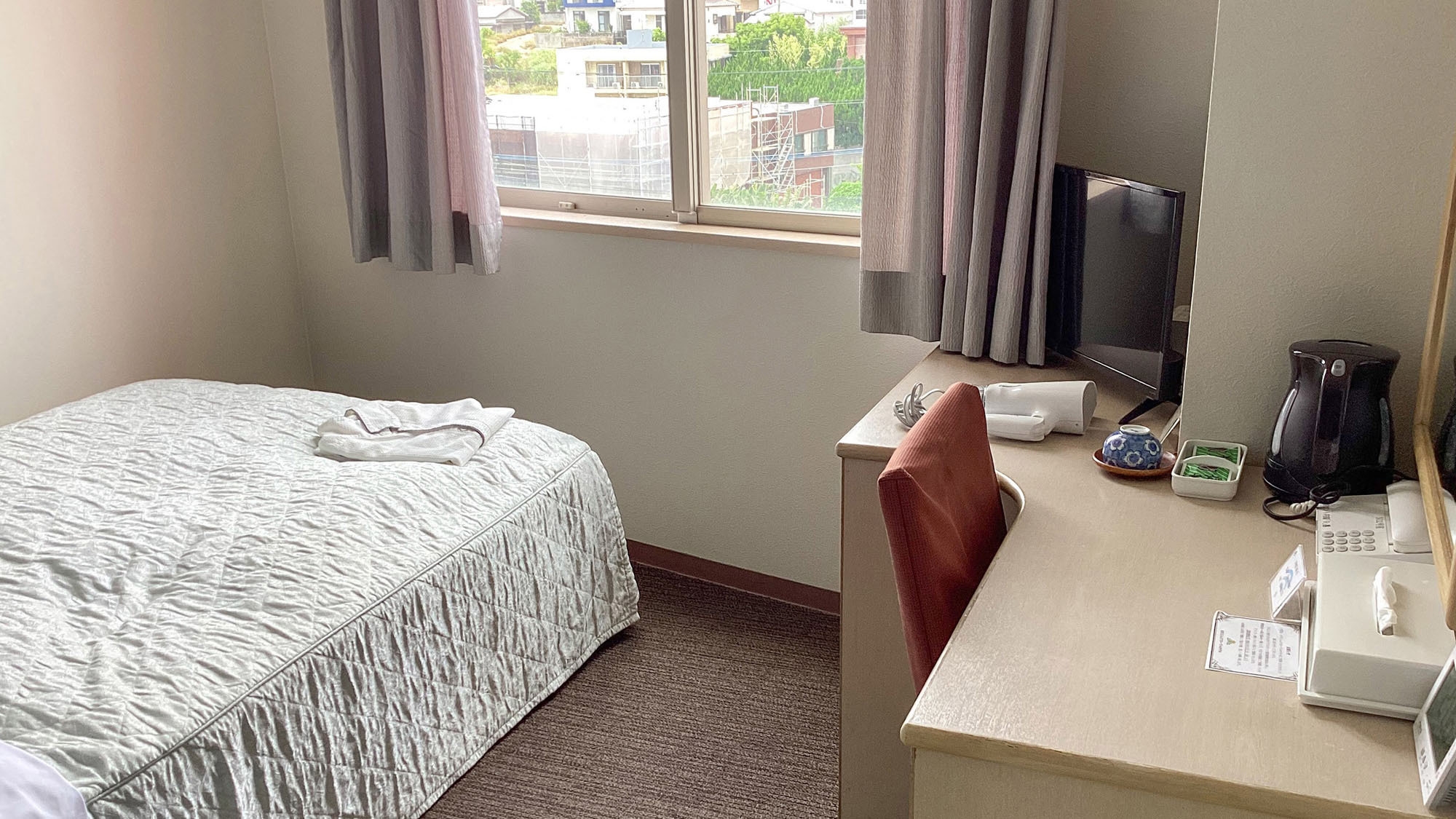 Wi-Fi、テレビ、個別空調、冷蔵庫、机、椅子、電子ケトル、電気スタンド、ハンガー、ドライヤー、和室は室内に専用のバスルームなし(サウナ付大浴場、又は宿泊者専用の展望浴場をご利用ください)、ソファーセット(トリプル・DXツイン・シングルスイートのみ)