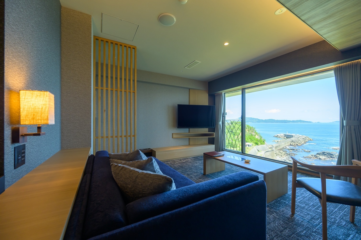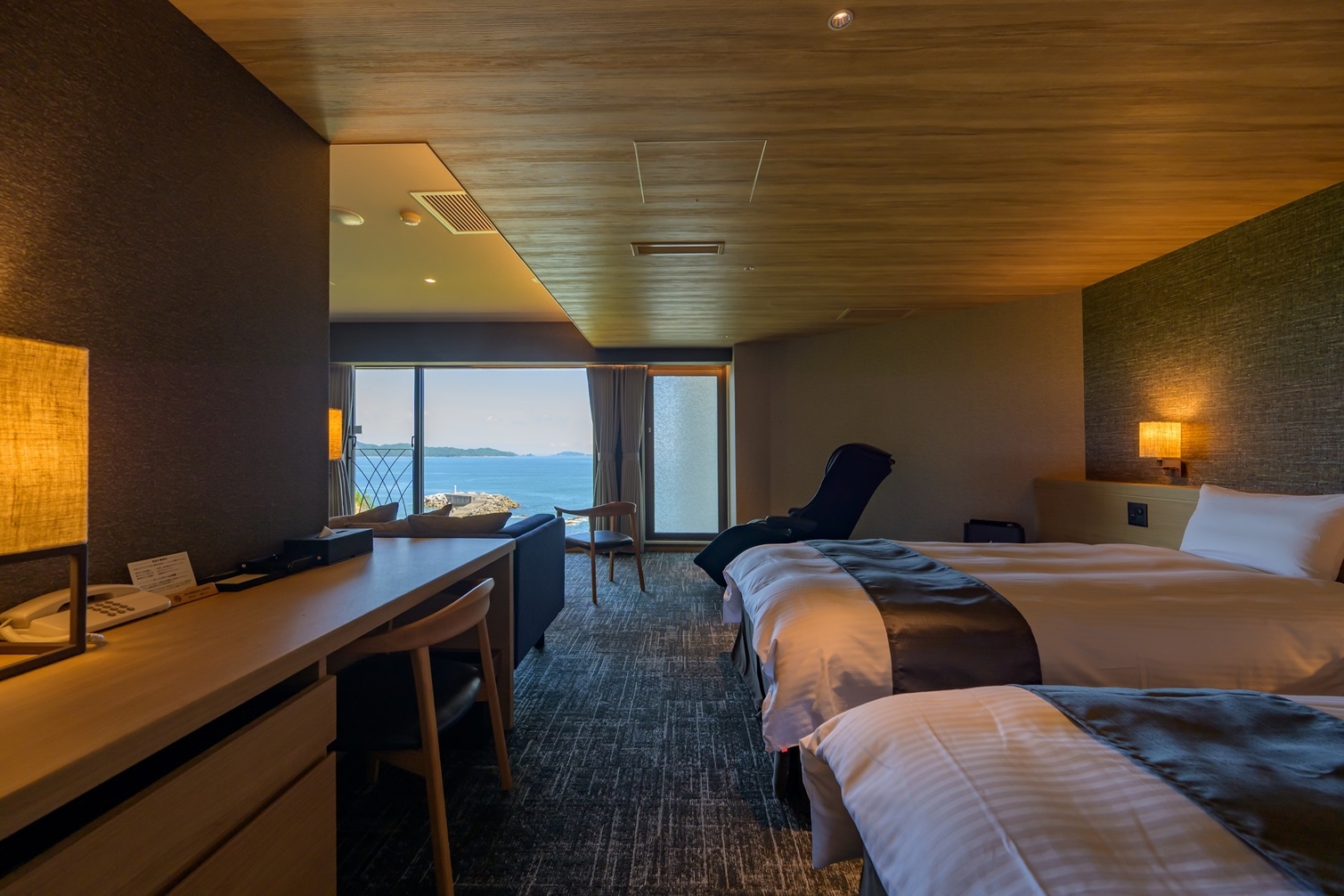 大きな窓から海を眺めてリラックスできるデラックスタイプ。★バストイレ(洗浄機付)、マッサージチェア完備。