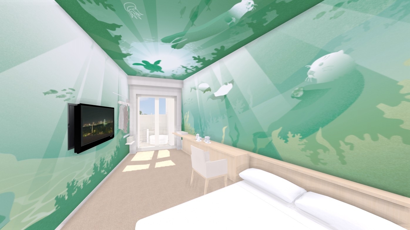 鳥羽水族館とコラボレーションし、水族館で大人気の「ラッコ(キラ・メイ)」が暮らす海をテーマにした「泊まれる水族館」を実現