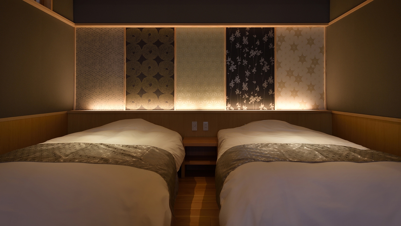 温泉に一番近い一階和洋室(シモンズ社製ベッド2台)禁煙 ※ベッドの移動・連結はできません