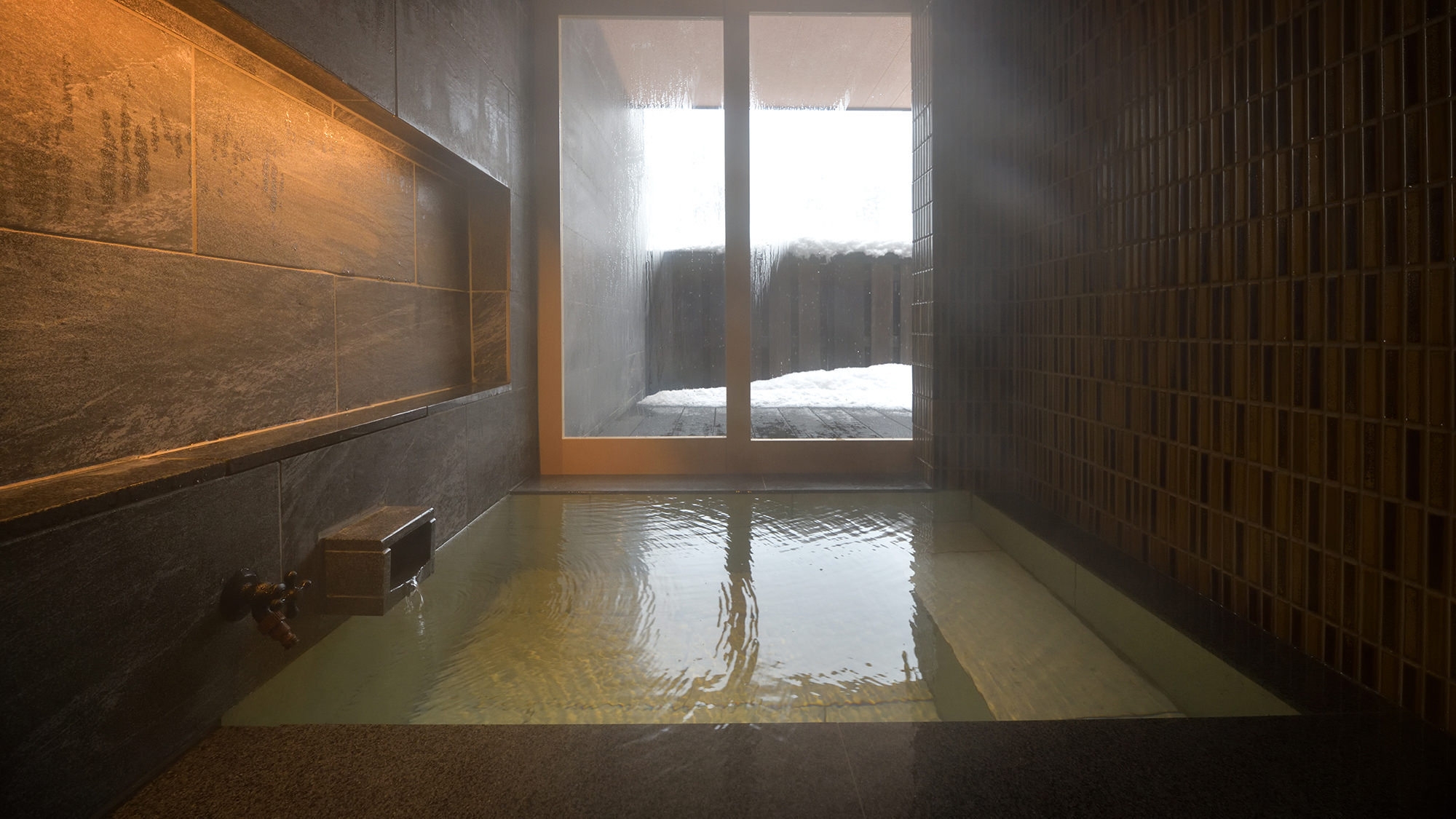 浴槽はけして広くはありませんが、その分豊富な湯量があふれるため浴槽内はいつでも新鮮なお湯に。一晩中お入りいただけます。