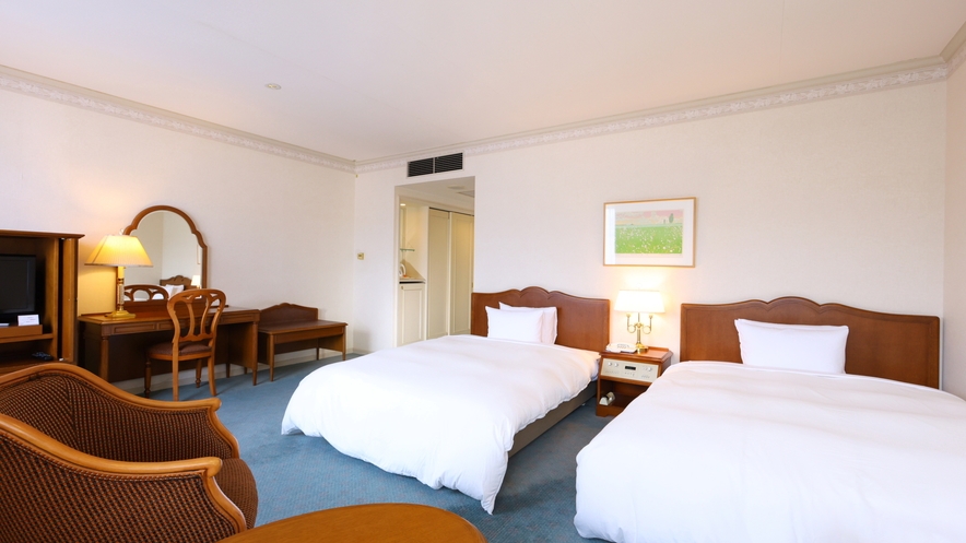 リビングルーム1室ベッドルーム2室のスイートルームです 各ベットルームにトイレ・バスルームがございます