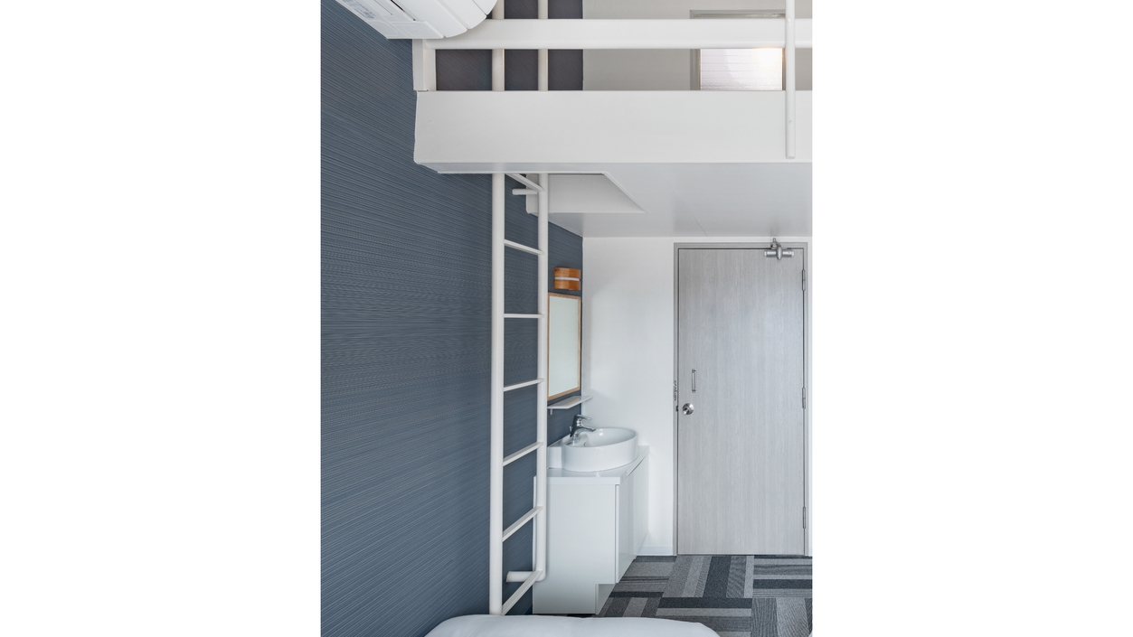 禁煙、シャワーユニット・トイレなし、洗面付き、無線LAN(Wi-Fi)接続無料、ツイン・ロフト付きで布団ありで9平米のお部屋です。ロフトの利用は垂直はしごです。