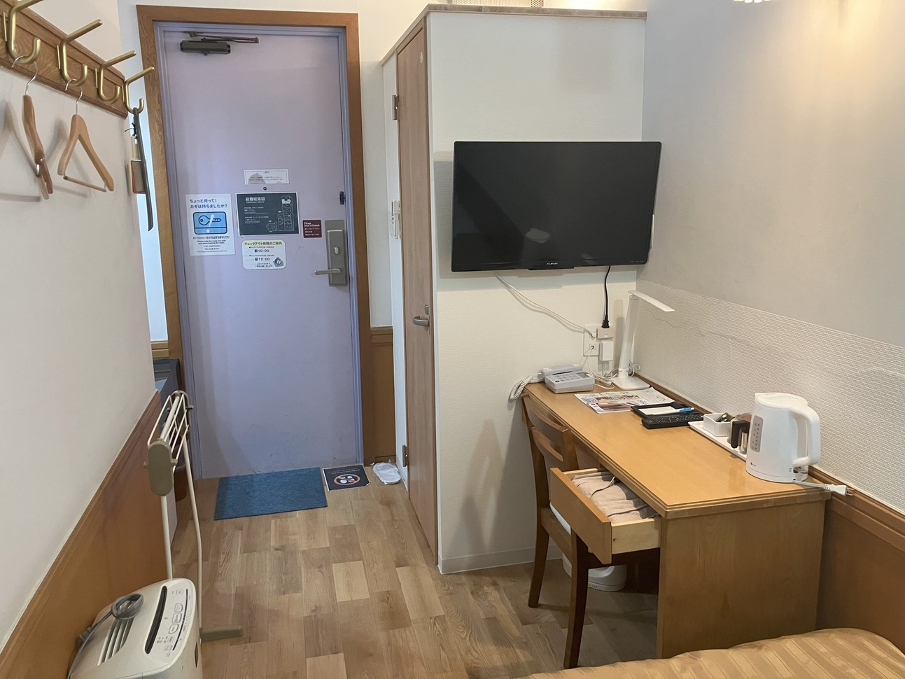 スタンダードなシングルプランで備品とタオルがついたお部屋です現在朝の8:30〜14:00はフロントが不在でご対応ができかねます。ご迷惑をお掛けして大変申し訳ございません。最終チェックイン時刻は27時です。チェックインがお済みであれば24時間出入り可能です。