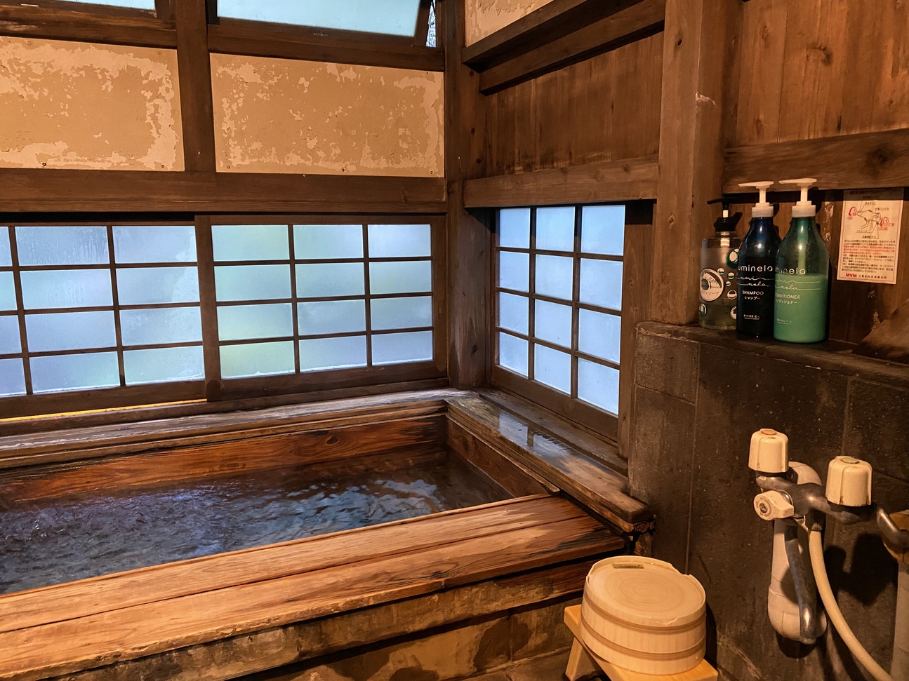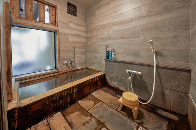 渓流を横目に内湯の貸切風呂がございます