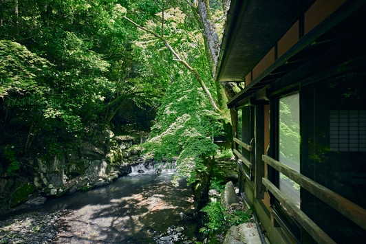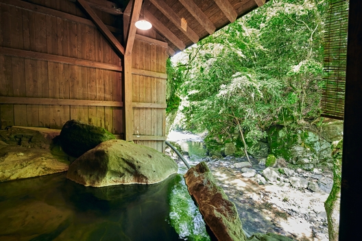 滞在中は渓流沿いの露天風呂付大浴場で日頃の疲れを癒すもよし、お部屋の露天風呂でくつろぐもよし。