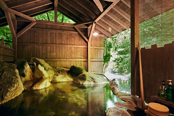 渓流沿いの露天風呂付大浴場がございます