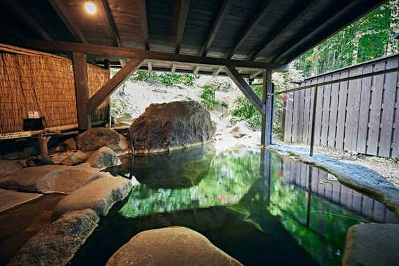 渓流沿いの露天風呂付大浴場がございます。