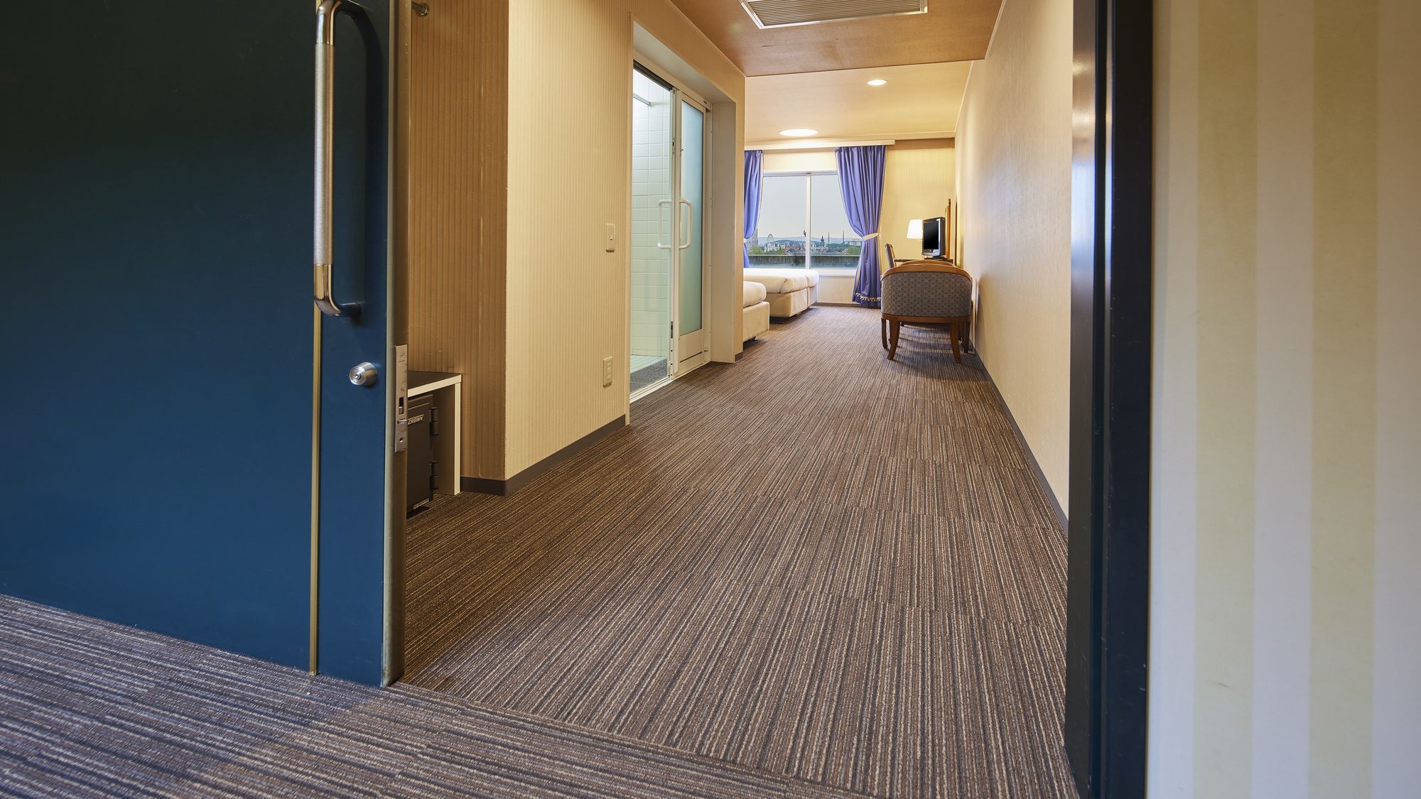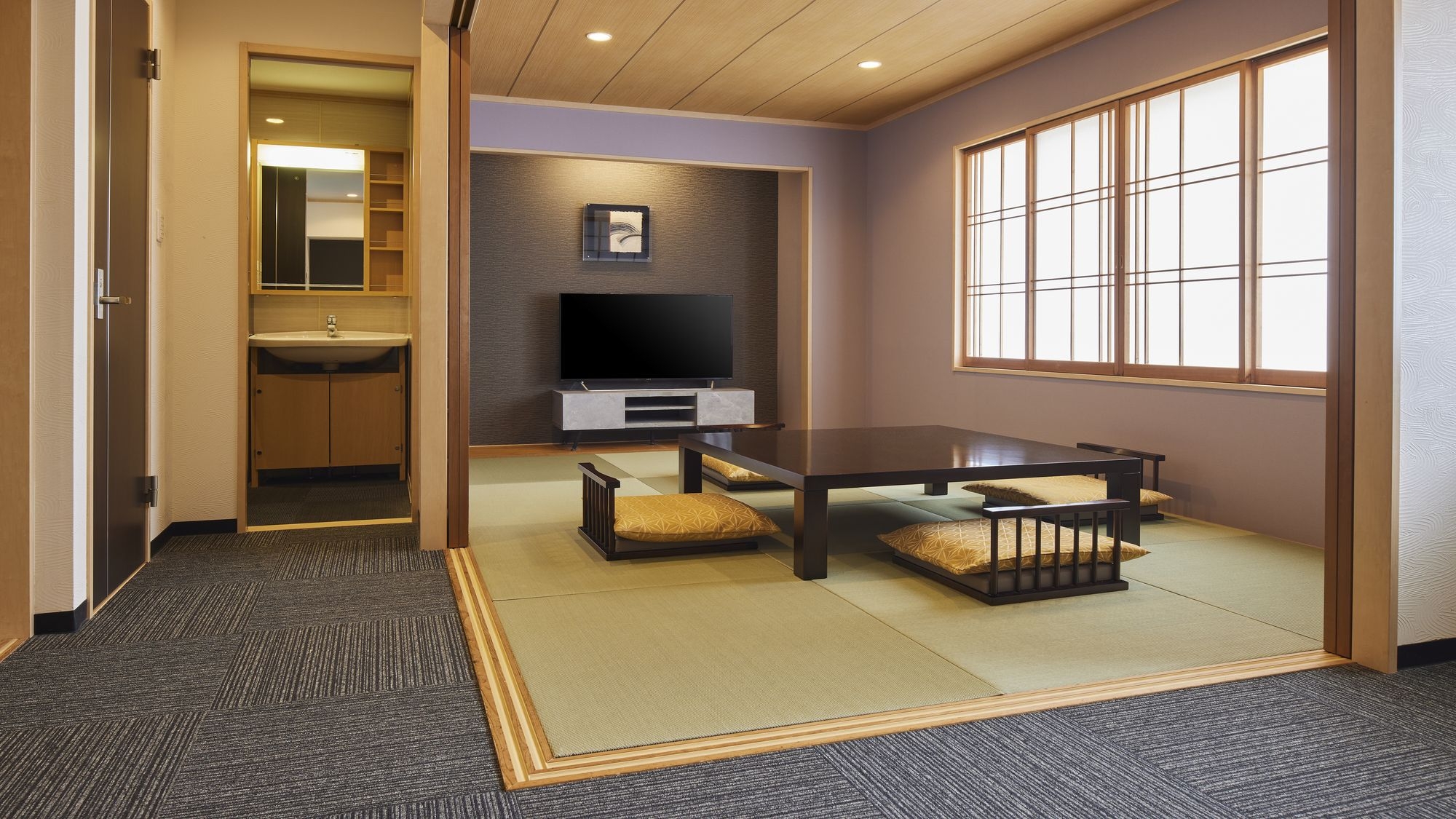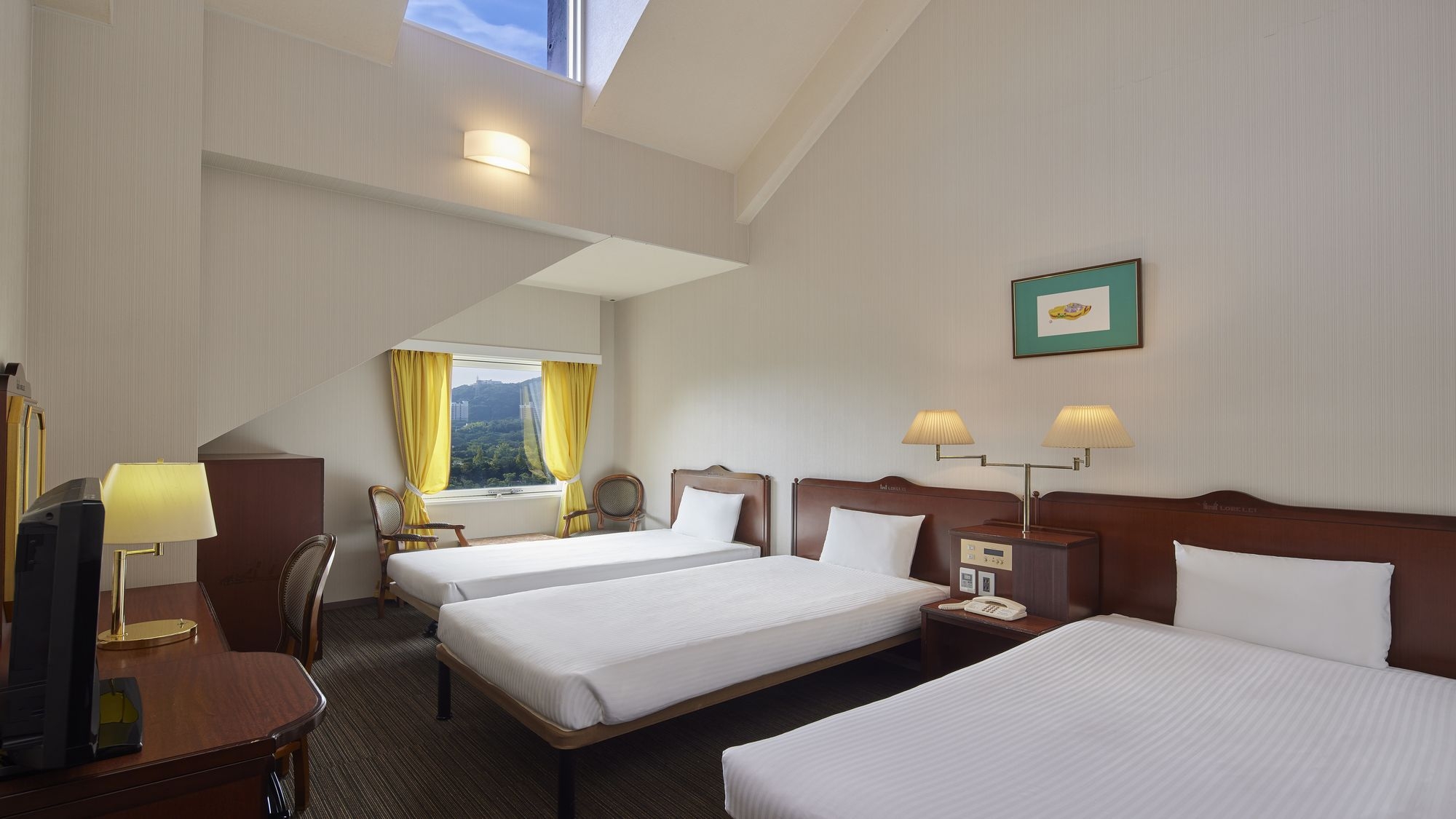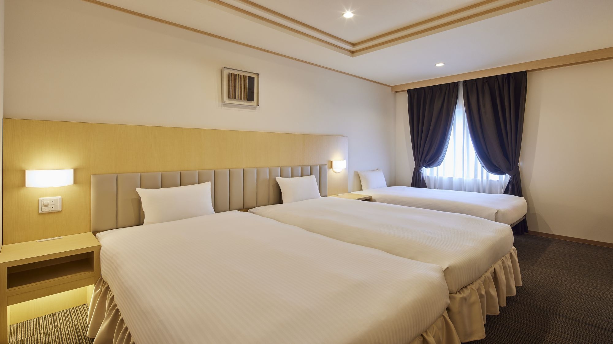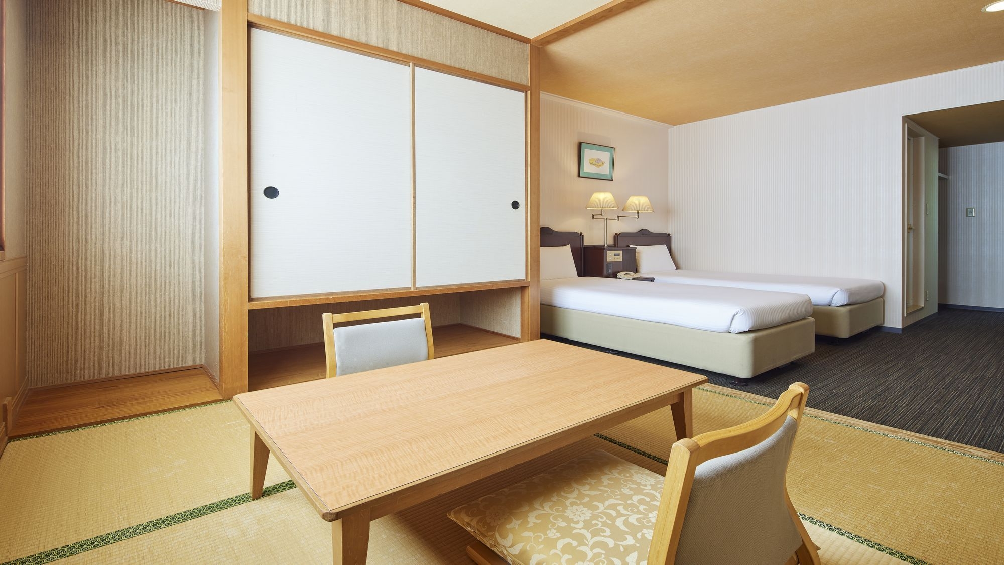ツインのベッドとゆったりくつろげる和室を備えたお部屋です。小さなお子様や、ご高齢のお客様も安心してご利用いただけます。