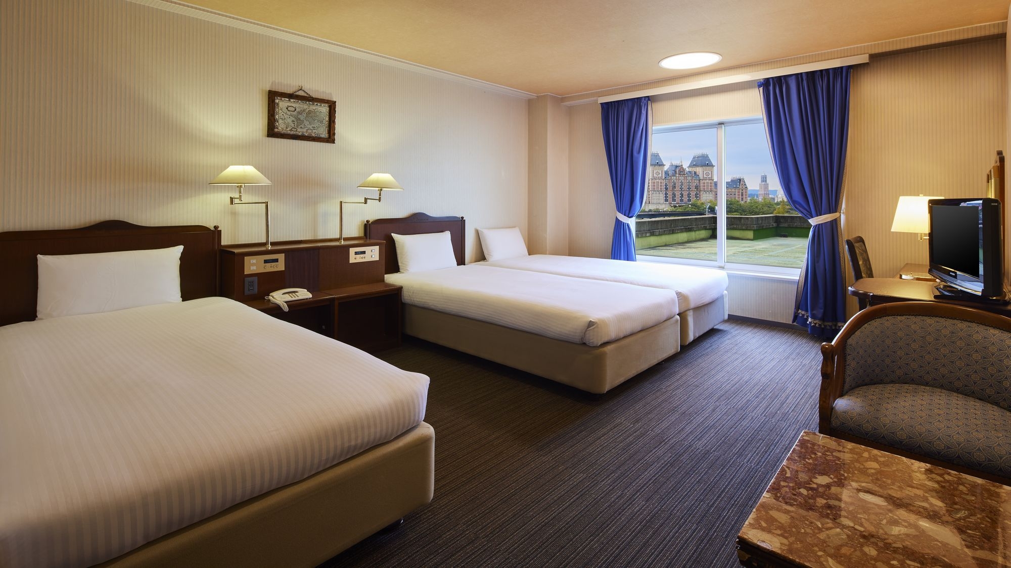 広々としたお部屋にベッドが2台と和室が付いたプレミアムな客室です。3世代のご家族でのご利用に喜ばれています。