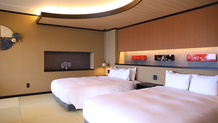 最上階【半露天風呂付きプレミアムスイート】での至福の一夜。