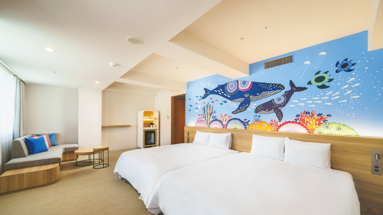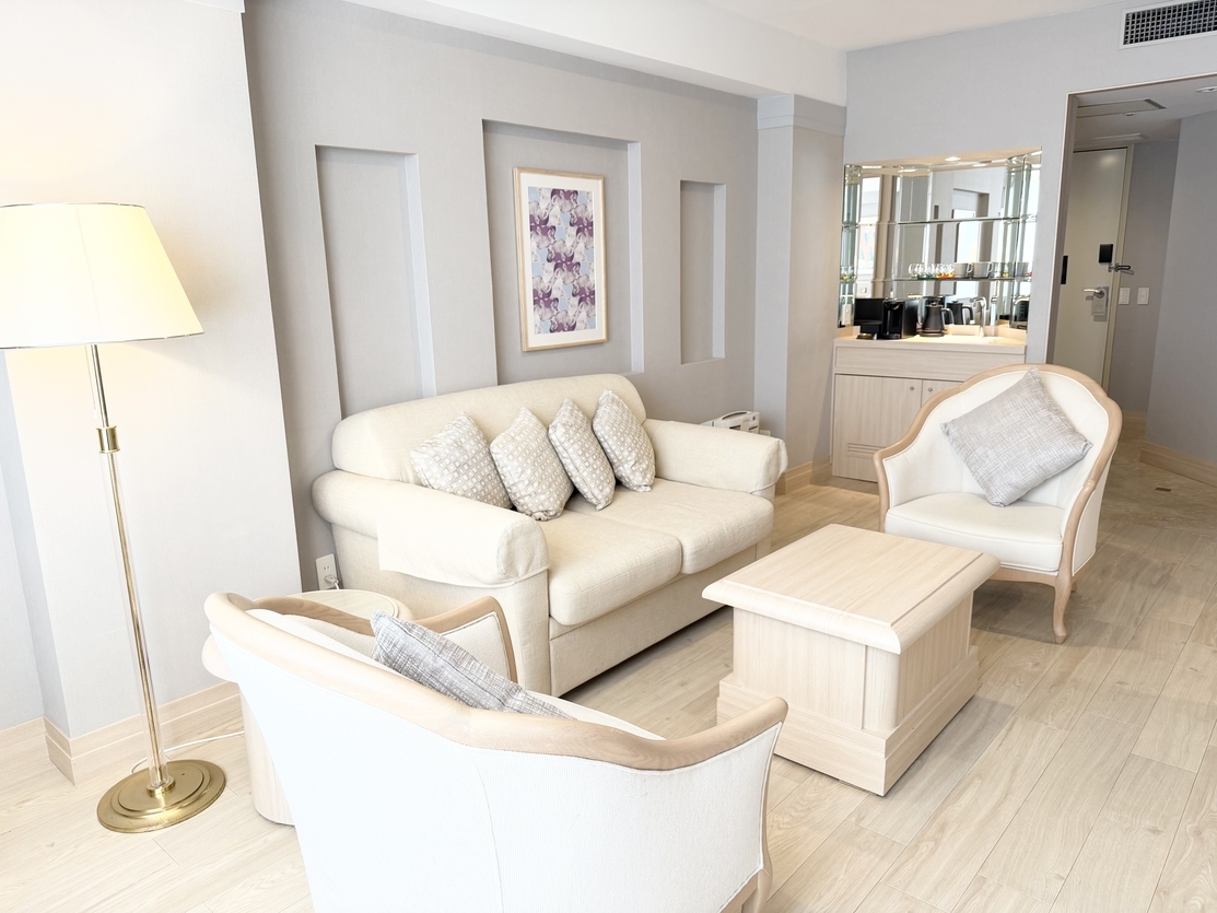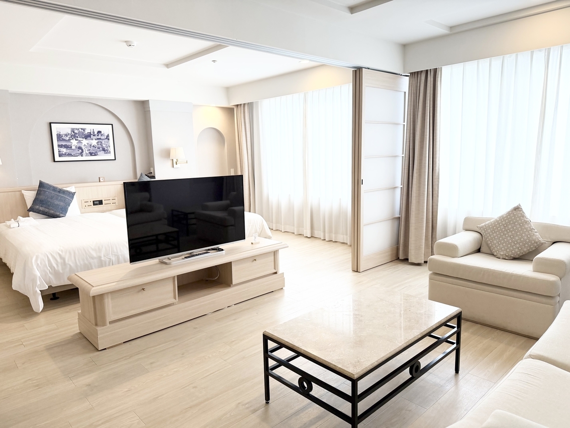 リビングと寝室を分けたスイートルームです。沖縄旅行でのご滞在をより豊かで心地よいものへと導きます。