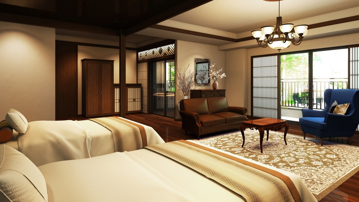 装飾や備品一つ一つに文人を表現する拘りを持った10種類のデザインの客室。