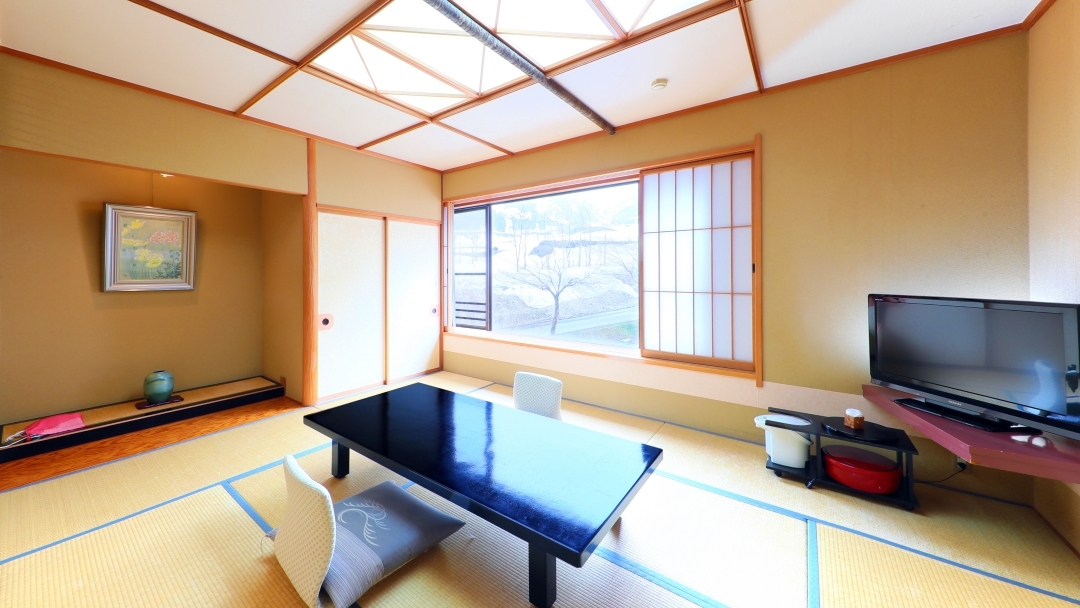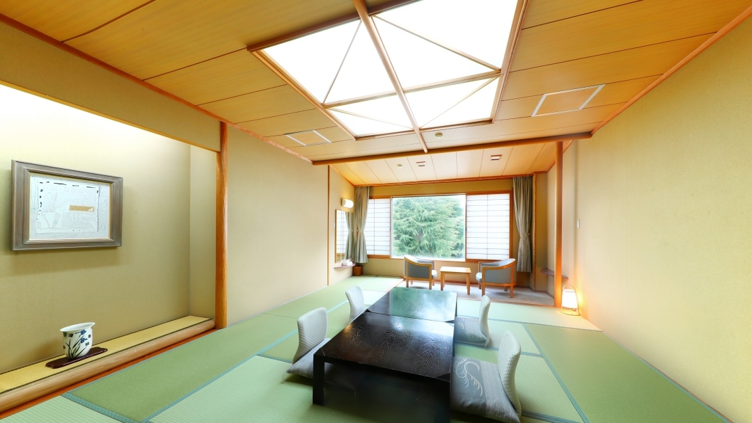 龍雲荘のスタンダードな和室タイプ。季節の彩りに包まれた寛ぎの和室10〜12.5畳。ご家族やカップル、ひとり旅など幅広いご利用に。※一部バスなし有。