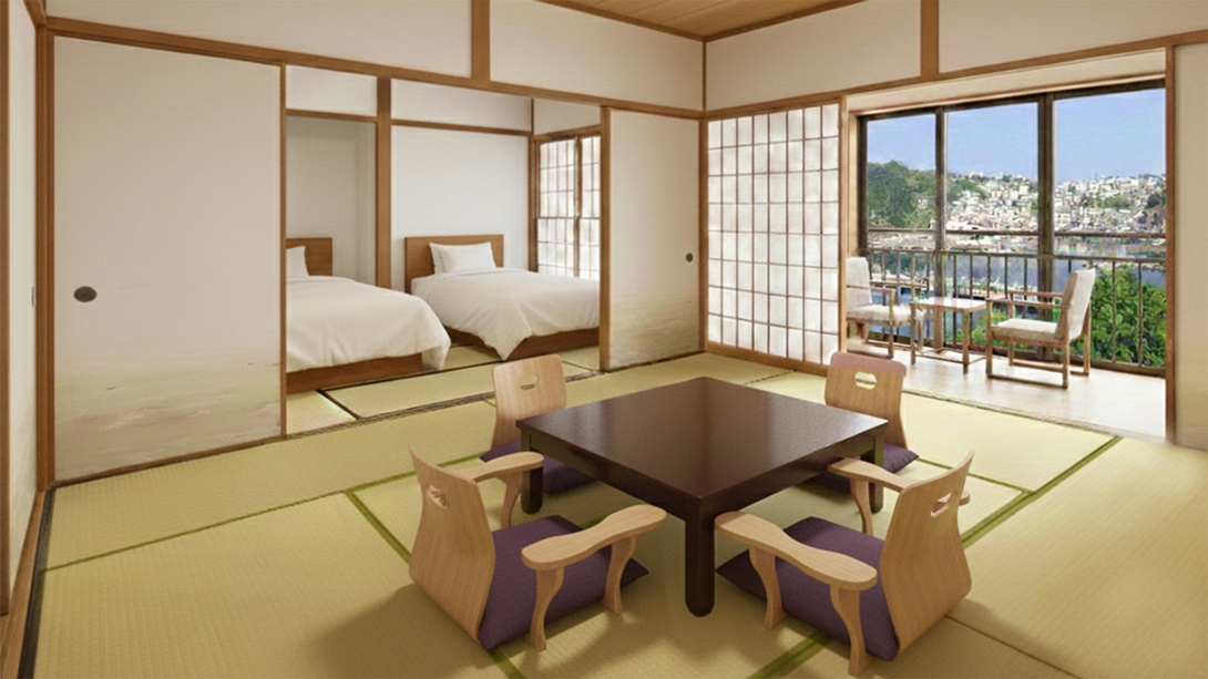 海側和室。井草の香りが気持ちよい【禁煙】のお部屋。眺めの良いリニューアル客室です。洗浄器トイレ付きです。大浴場をご利用ください。※入湯税別