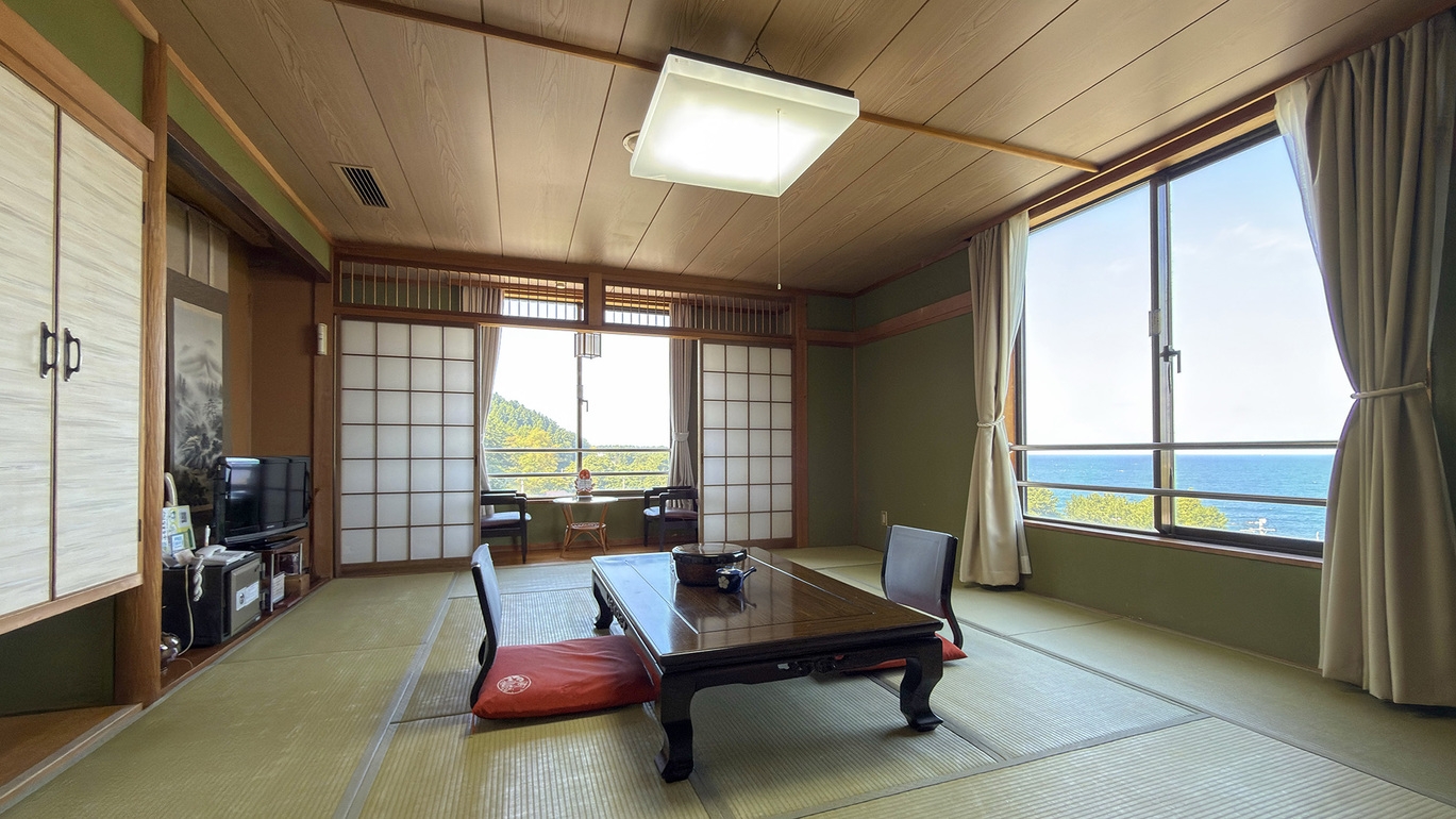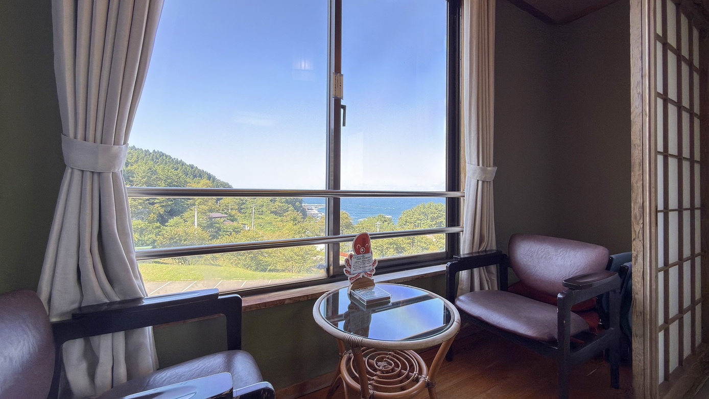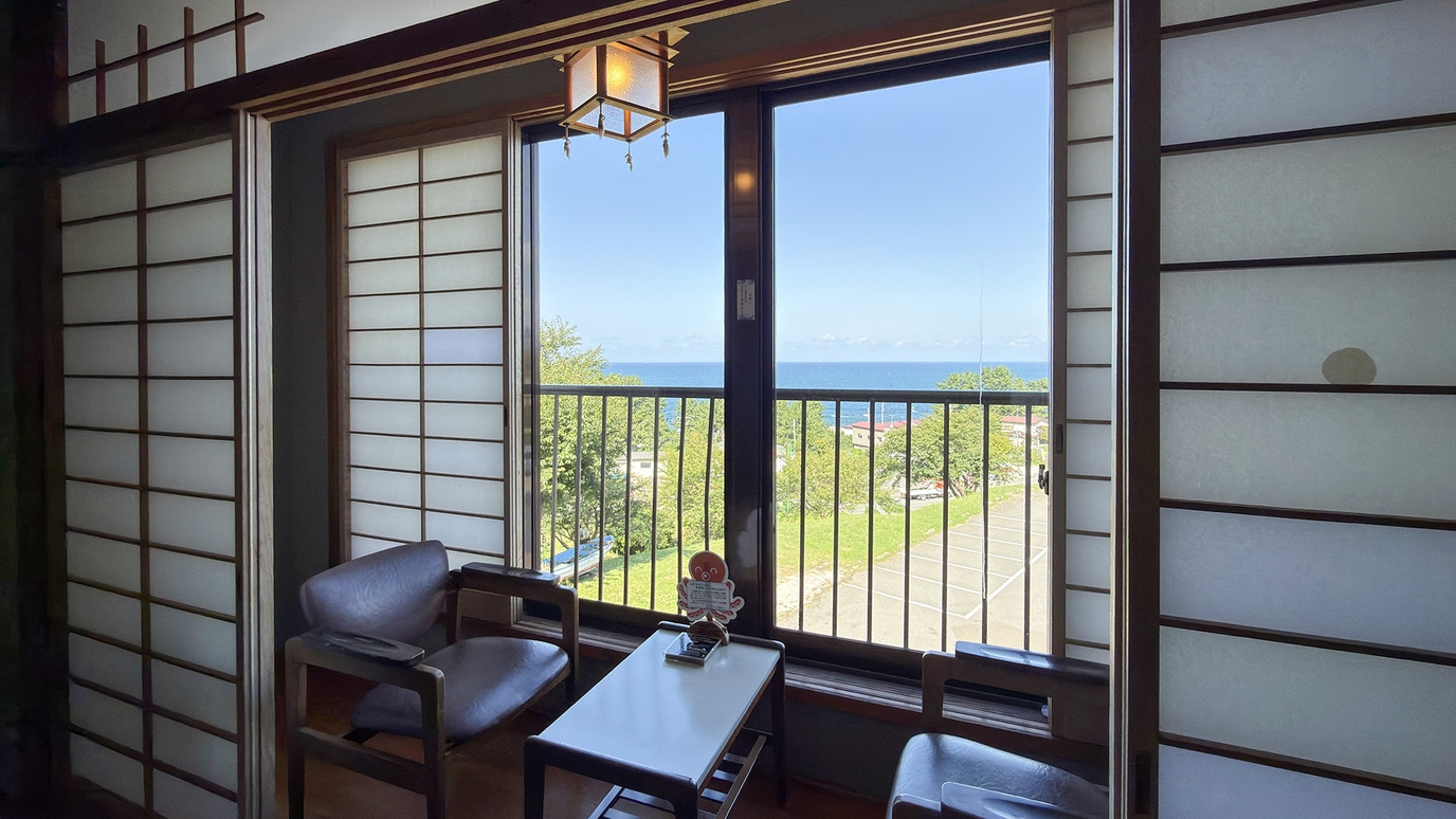 2〜5名様でご利用いただけるトイレ付きの15畳和室。 窓から日本海を望む、開放感あふれるお部屋です。