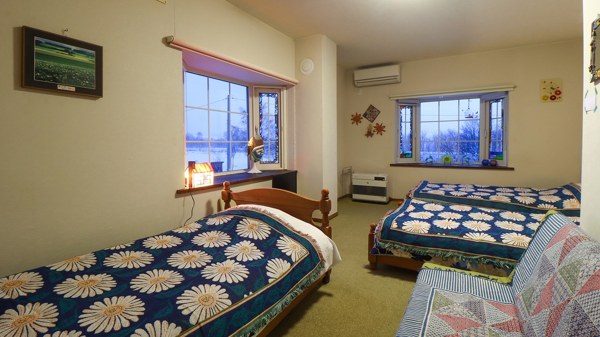 ★☆ 1泊朝食付きのプラン☆★\ 北海道の自然に泊まろう / 自然に囲まれた静かな空間で、のんびりとお過ごしいただけます♪駅から車で5分とアクセスが良好なことに加え、四季折々の景色が楽しめる場所です♪◇◇◇◆◇◇◇◆◇◇◇◆◇◇◇◆◇◇◇◆◇◇◇◆—お食事—食材は自家製の野菜と美瑛や北海道が産地のものをこだわってご用意しております。ヘルシーだけど食べごたえのある朝食は1日を元気にスタートできること間違いなし♪夕食 : 夕食無しのプランになります。朝食 : 7:30〜になります。— 部屋設備・アメニティ —エアコン、テレビ、フェイスタオル、バスタオル、お茶セット、WiFi・バス・トイレは共同となります。・冷蔵庫と電子レンジは共有スペースにございます。・ドライヤーは貸出になりますのでカウンターへお声がけください。— お風呂 —入浴時間:17:00〜22:30※翌朝のご入浴はできません。あらかじめご了承ください。〈アメニティ〉シャンプー、リンス、ボディーソープ—有料設備・アメニティ—パジャマ 200円浴衣 700円歯ブラシセット 350円—その他—・当施設ではクラフト作りやステンドグラス制作、ジャム作りなどの体験が可能です♪また現地での販売やネットショップの販売もしておりますのでぜひご覧ください♪※体験は事前に予約が必要になりますので、ご予約の際にお問い合わせください。—周辺観光・アクセス—敷地内の無料駐車場をご利用いただけます。現在送迎は行っておりませんのでご注意ください。JR富良野線 美瑛駅より お車で約5分旭川空港より お車で約15分四季彩の丘 お車で約15分町民スキー美瑛場 お車で約8分白金青い池 お車で約20分ファーム富田 お車で約35分