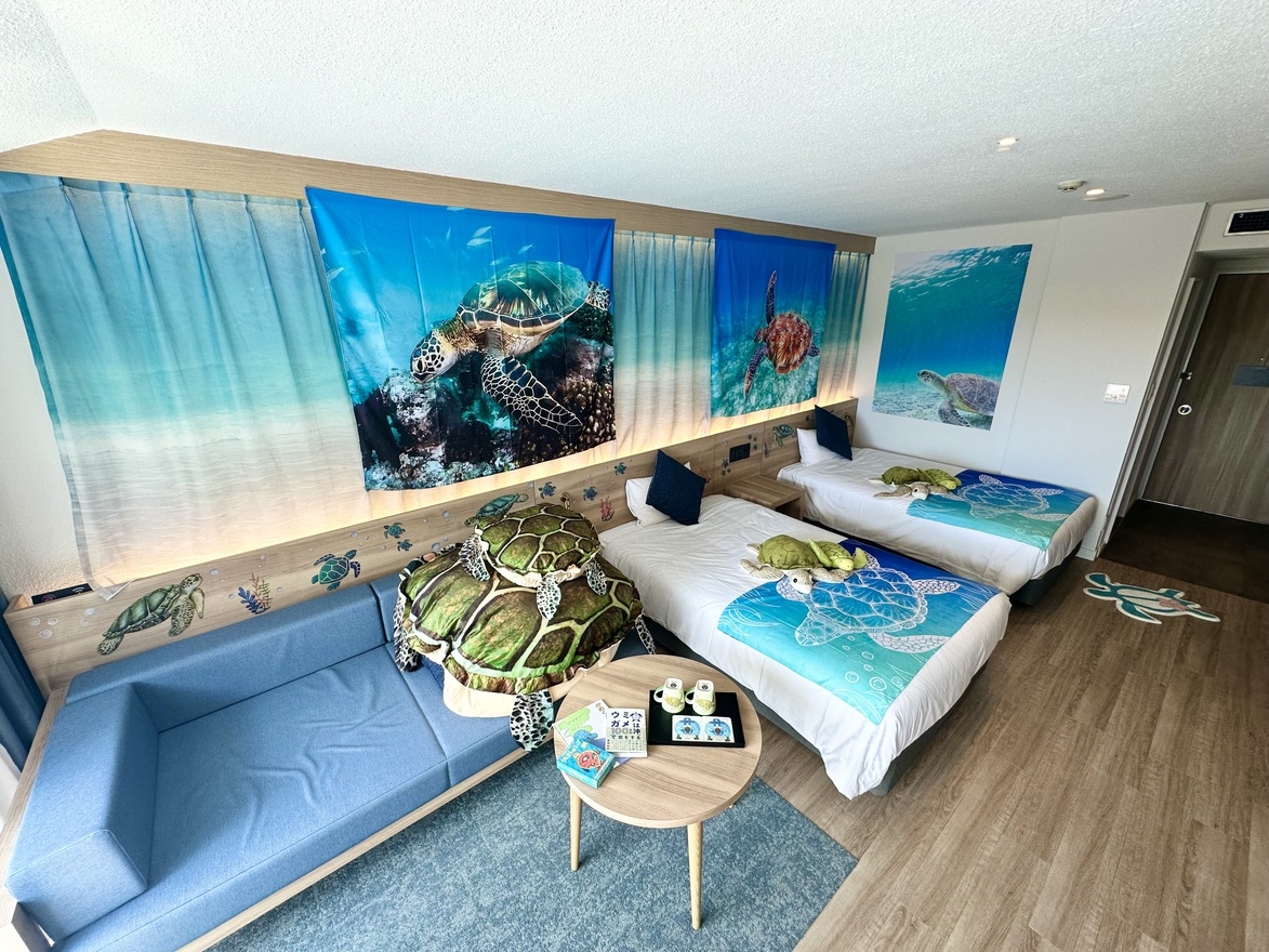 お部屋中ウミガメだらけのコンセプトルーム!?久米島ウミガメ館の入場券付き(ソファベッド1台あり)(エレベーターなし)
