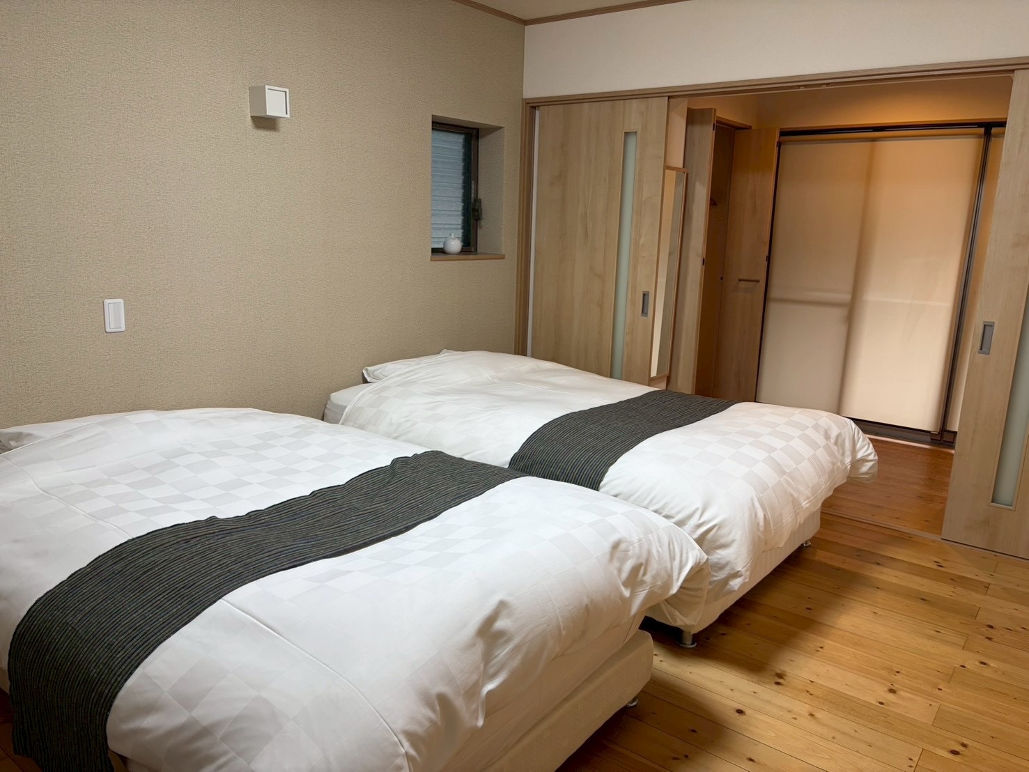 ゆったりとした和室と、寝室にはセミダブルのベッドを2台備えた特別室。