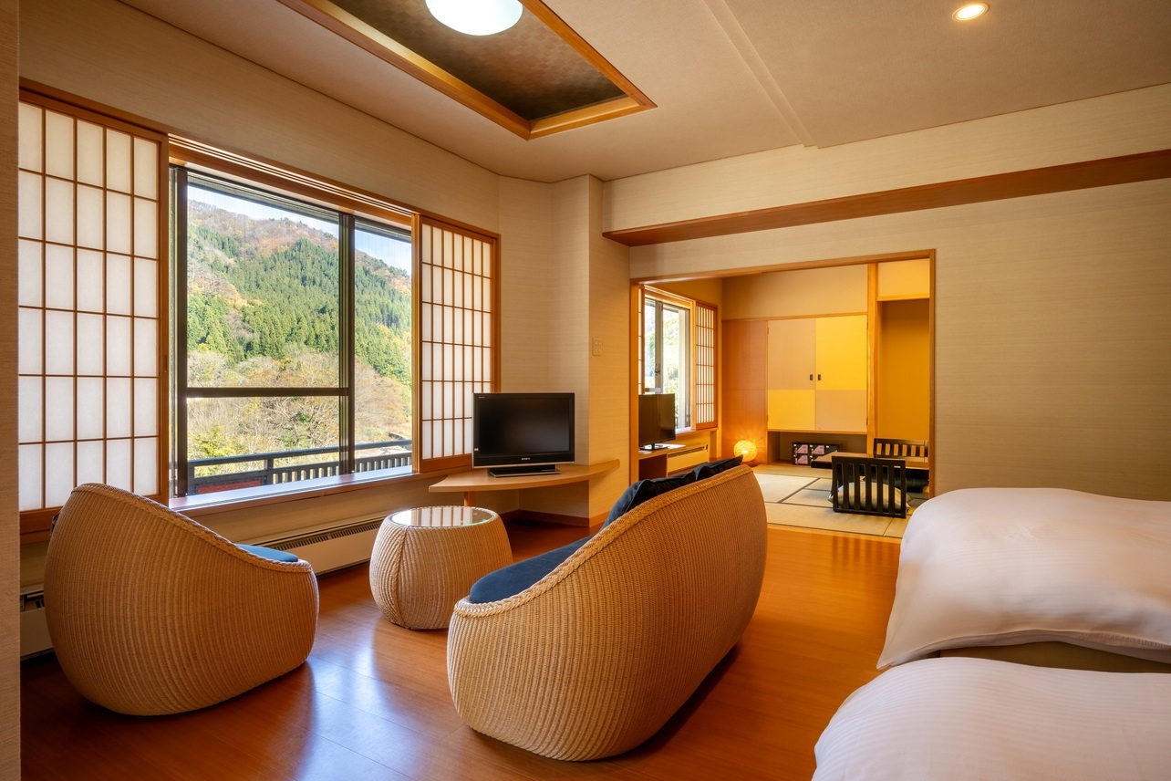 和風ツインタイプ(シモンズ社製ベット・テラス付)・展望風呂(ひのき風呂)