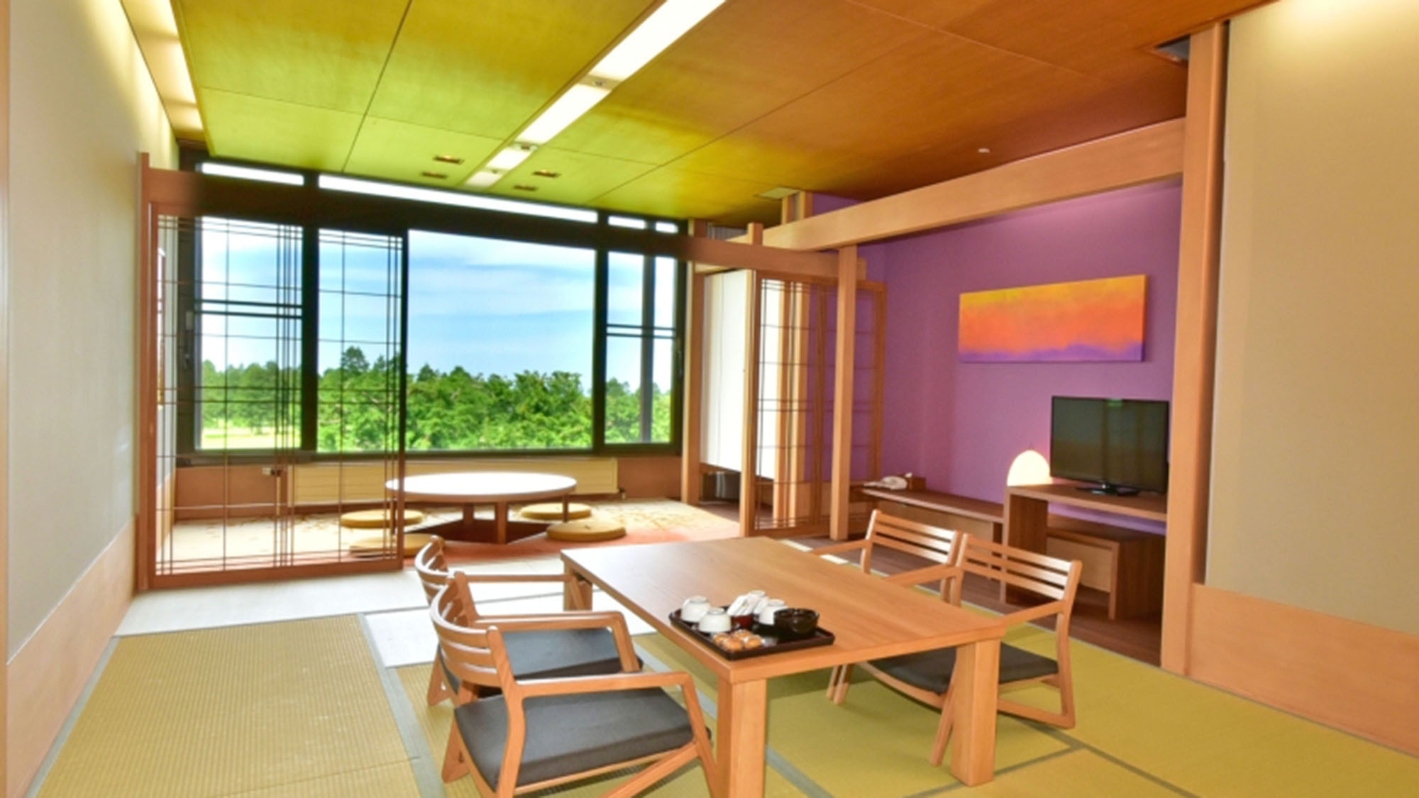 近隣地域の食材を取り入れたお食事と広大なゴルフ場を望む和室でのんびりお過ごしください。