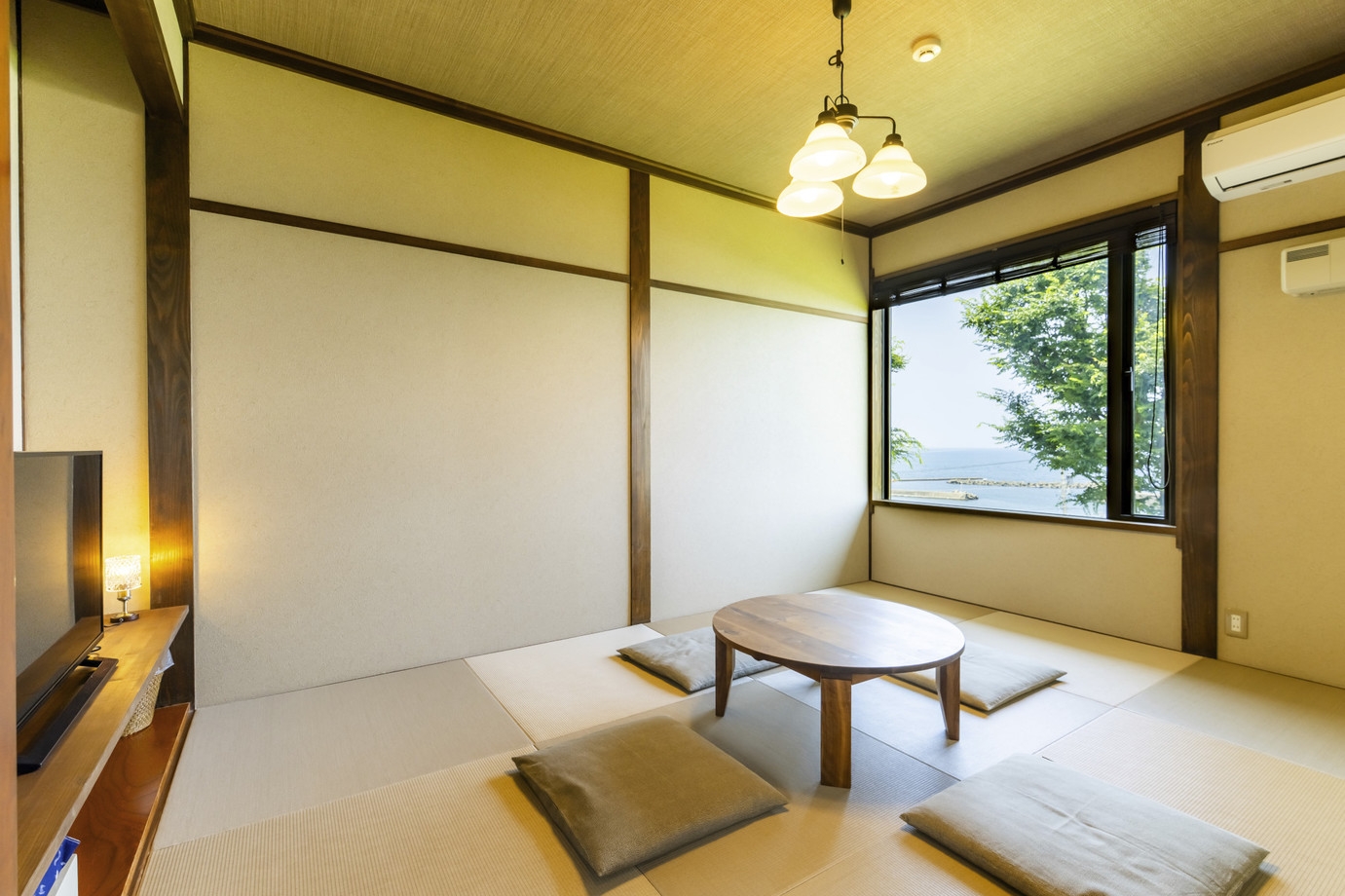 日本海一望の客室。部屋内にトイレは無いですが、部屋を出た先に客室専用のトイレと洗面台がございます。