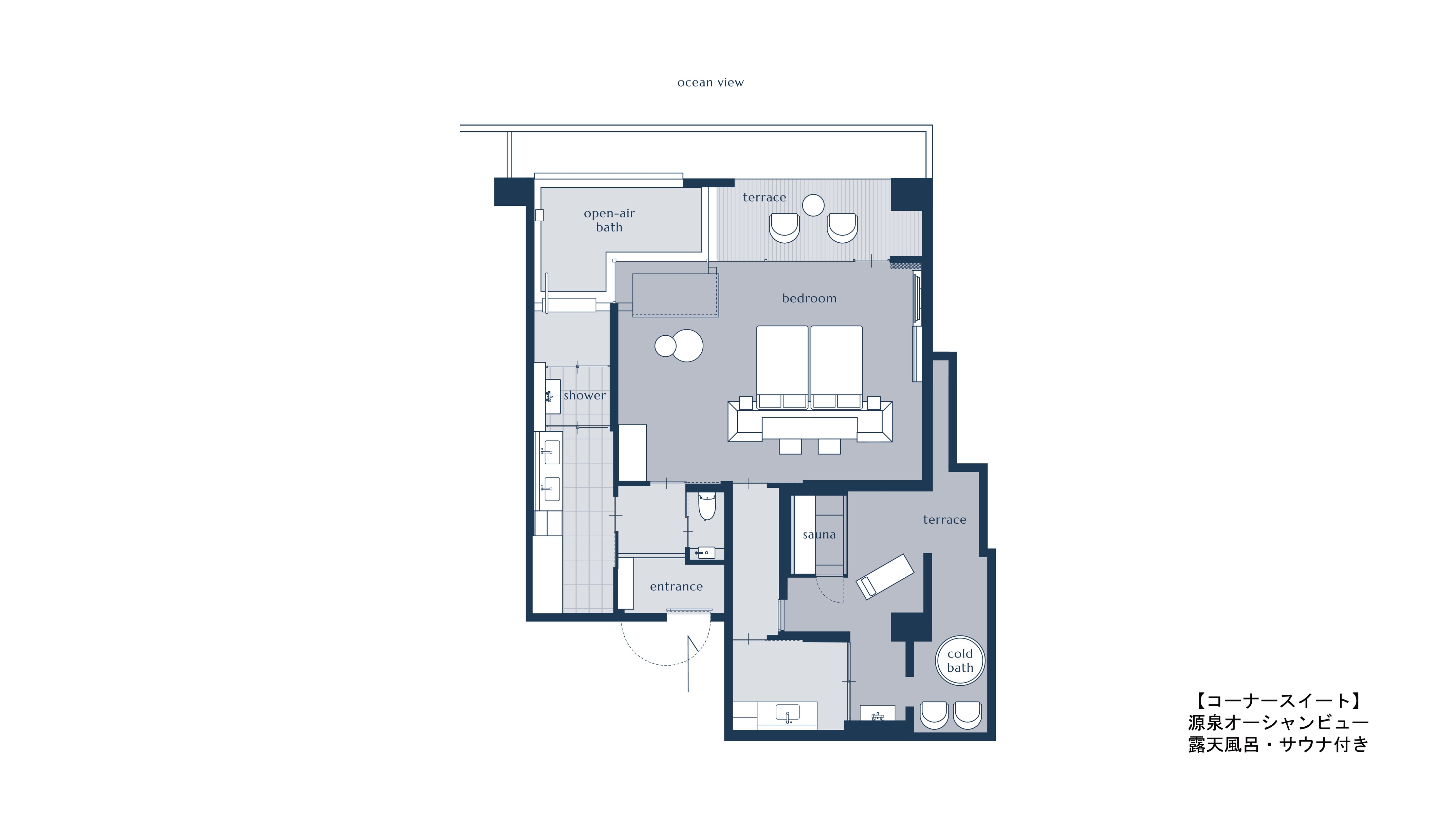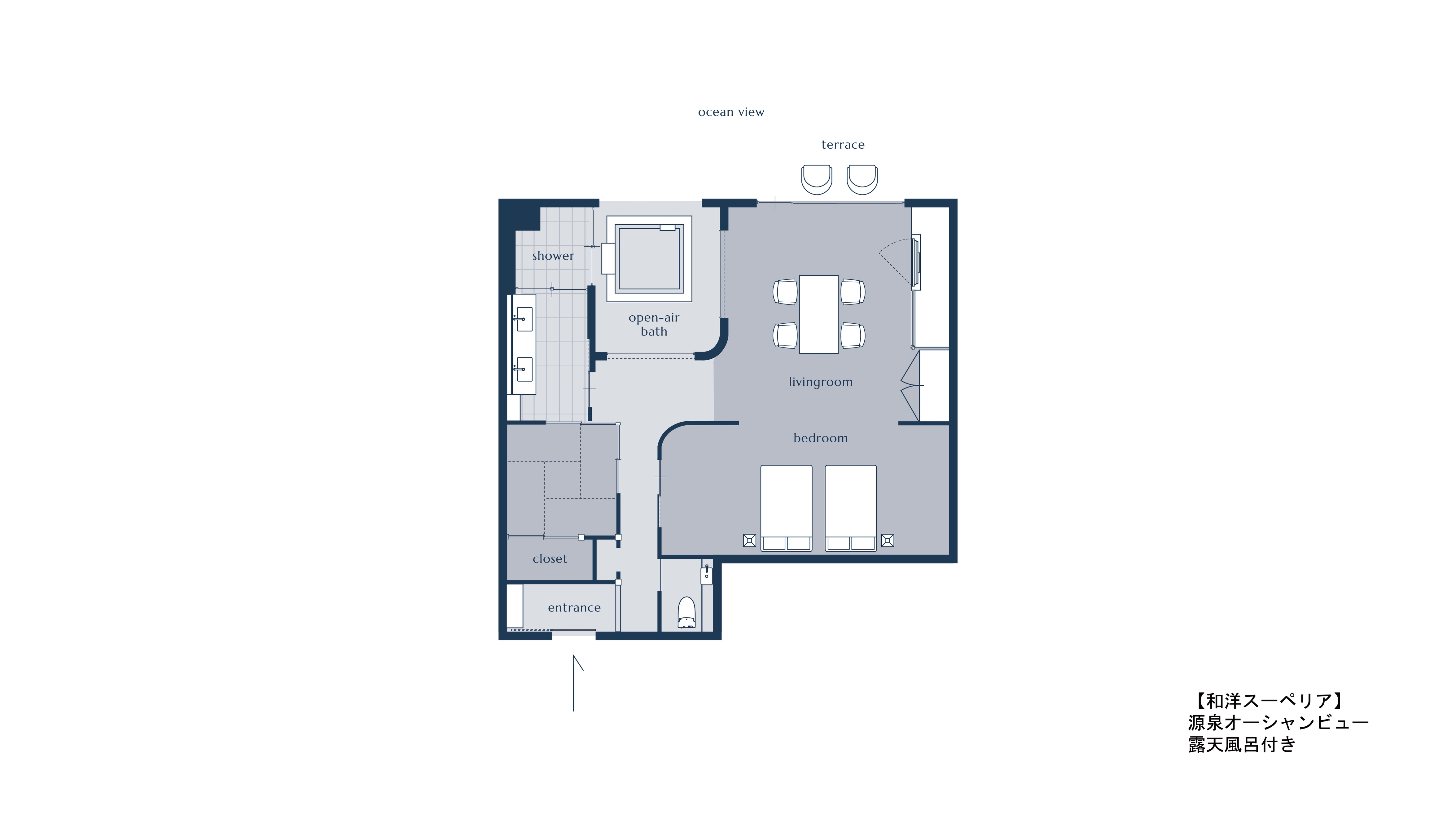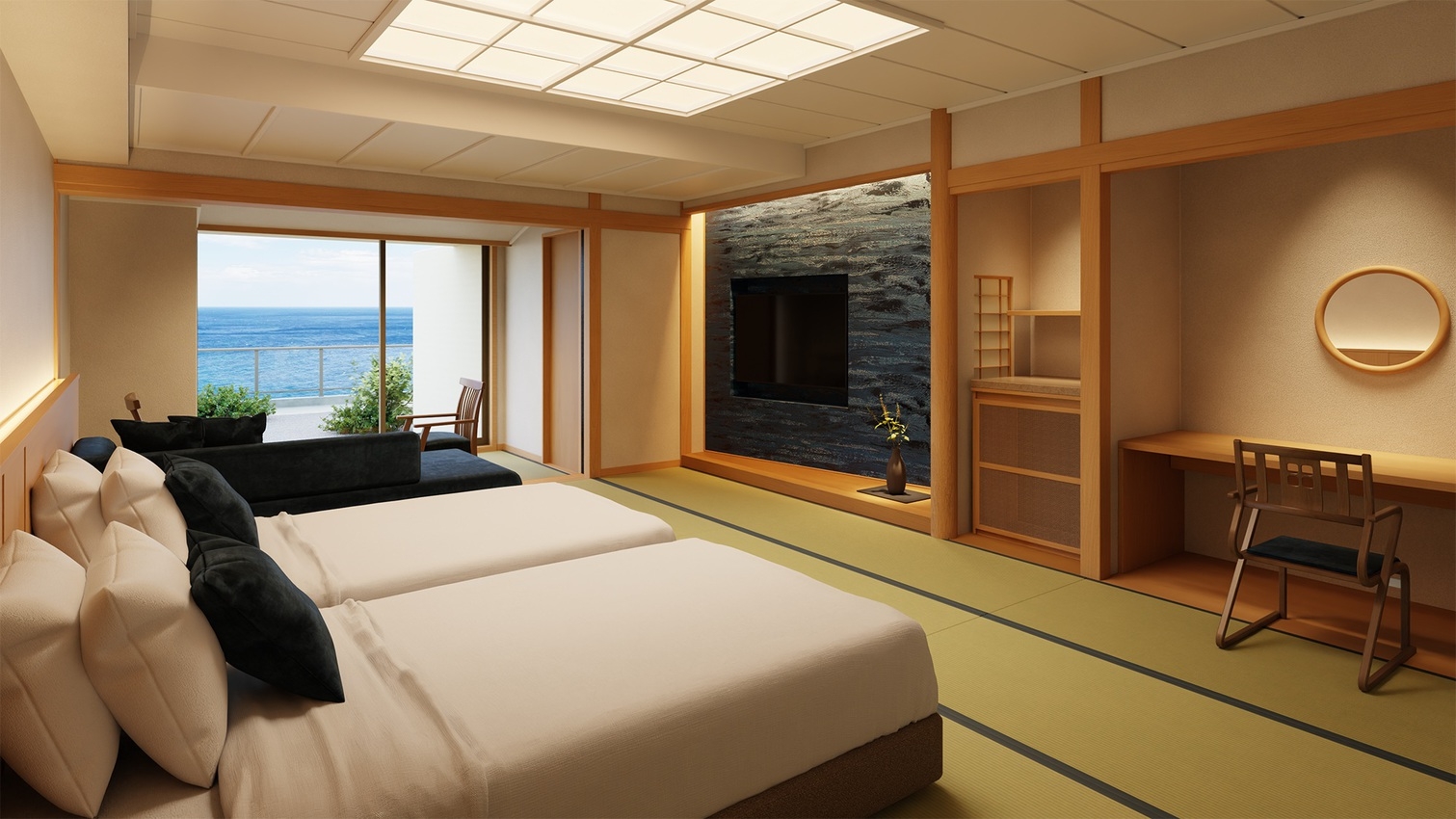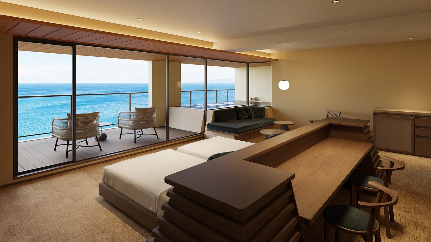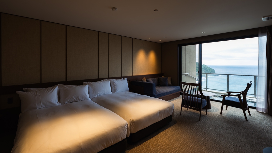 ご滞在の中心となる客室は、全室オーシャンビュー&露天風呂付き