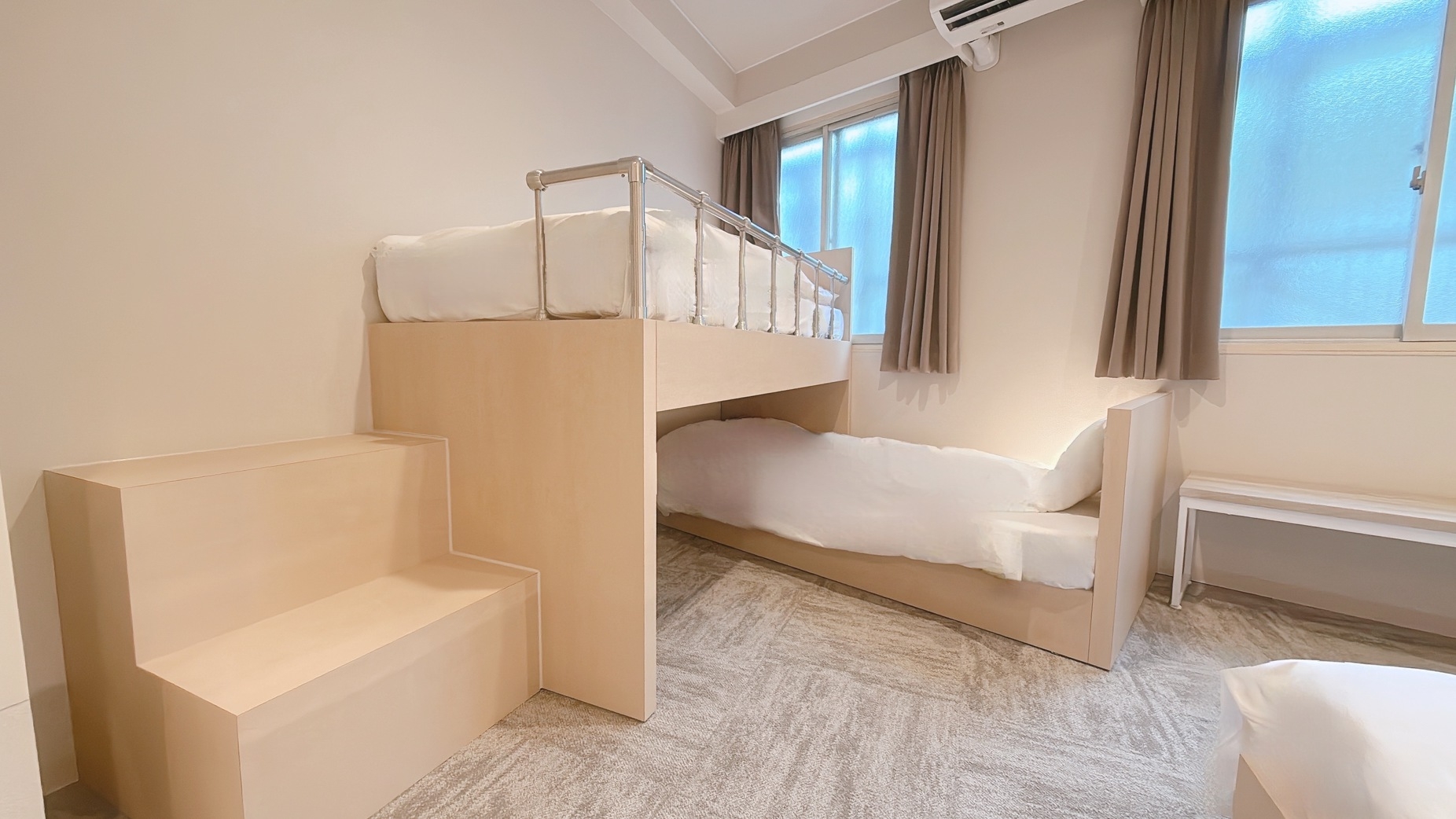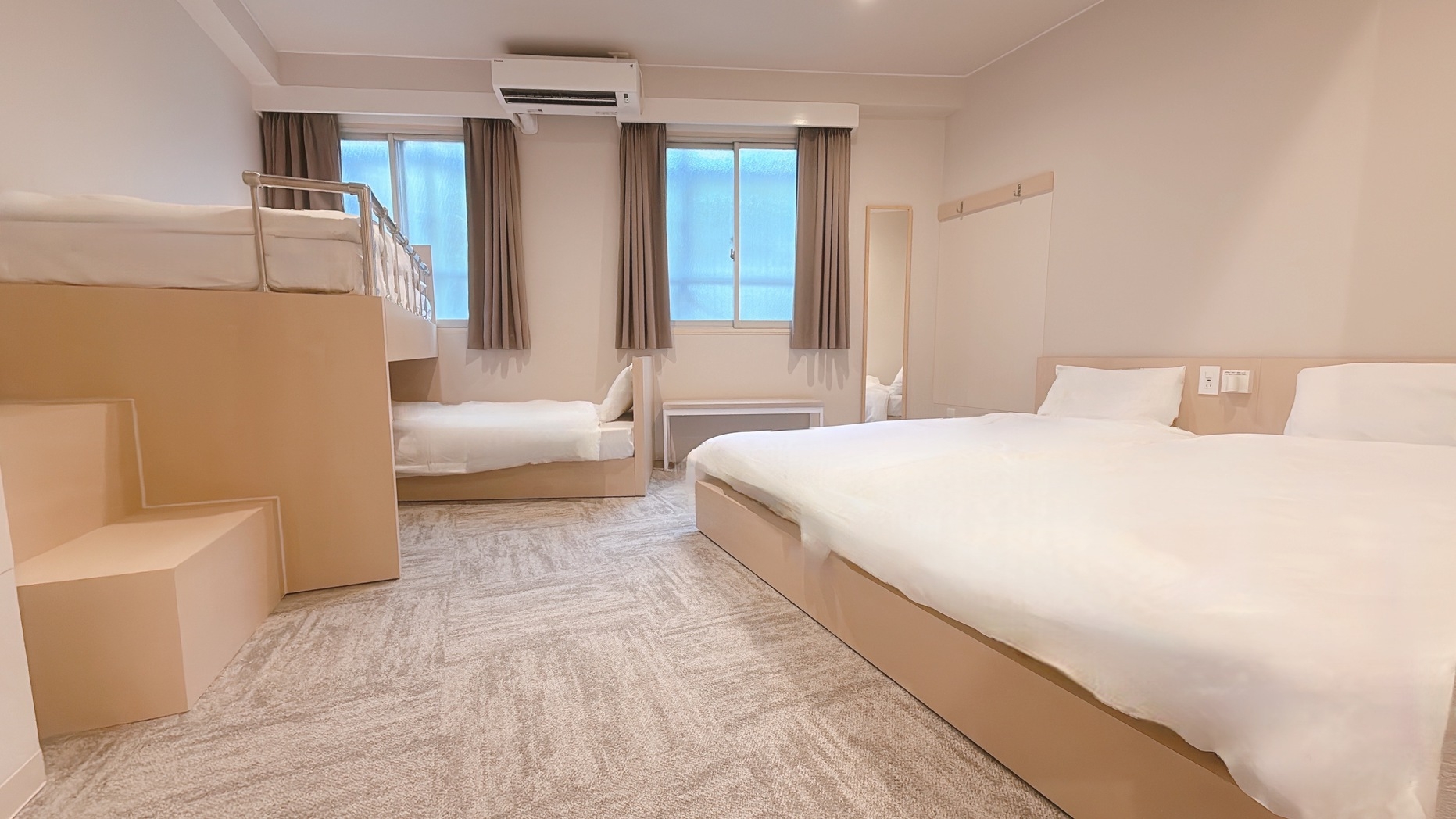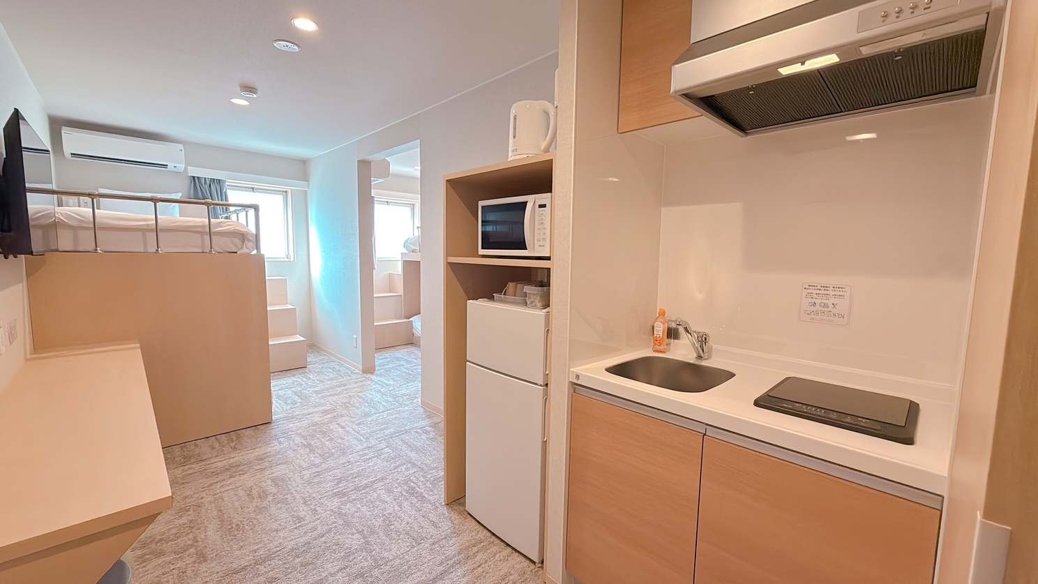 ※8月1日をもって、浴衣の貸し出しを終了いたしました。つきましては、寝間着はご自身でご用意いただきますようお願い申し上げます。ご理解のほど、よろしくお願いいたします。■最大5名様まで一緒に御宿泊可!ご家族やお友達同士でご利用いただけます。2段ベッド2台 シングルベッド1台ベッドサイズはともに 幅97センチ 長さ195センチ■設備・電子レンジ・IHコンロ・冷蔵庫・ミニキッチン・洗い場付浴室・独立型トイレ■ご宿泊のお客様には調理器具・食器をレンタルしております。チェックイン時にお申し付けください。※ご宿泊のお客様以外の入室は固くお断りいたします。■ご注意 館内全面禁煙。※電子タバコ・加熱式タバコを含む、すべての喫煙行為はお断りいたしますWi-Fiのみ※有線LANはございません。■清掃についてお部屋の清掃は3日ごとに行います。【毎 日】タオル交換 ゴミ回収★朝10時までに使用済タオル等をお出しください【3日毎 】シーツ交換 シャワーブース清掃■駐車場■予約不可。到着順にご案内。ワンボックス不可。サイズ:1690×4245まで。15時から10時:1,200円。10時から15時:800円近隣コインパーキングあります※提携なし■コインランドリー24時間利用可能※有料■徒歩2分圏内に、コンビニが3軒ございます。◆アクセス◆名城線東別院駅 2番出入り口目の前。徒歩0分。