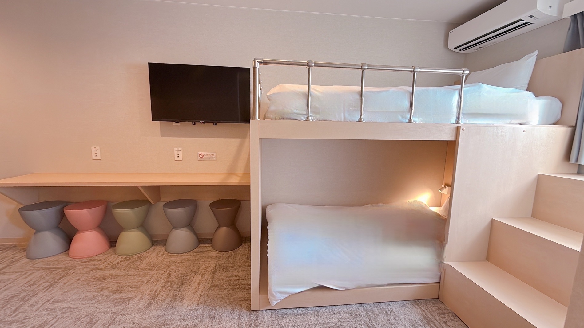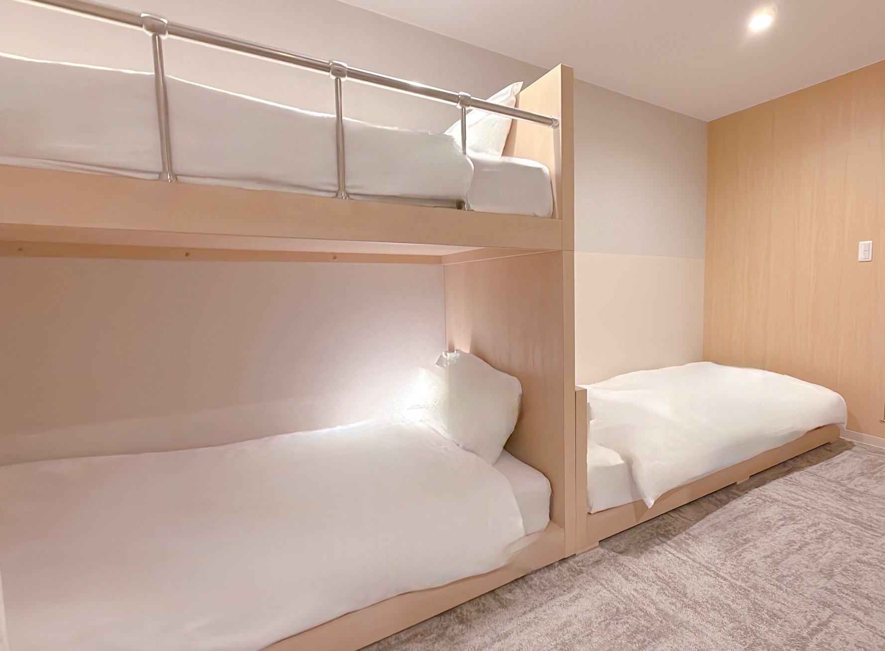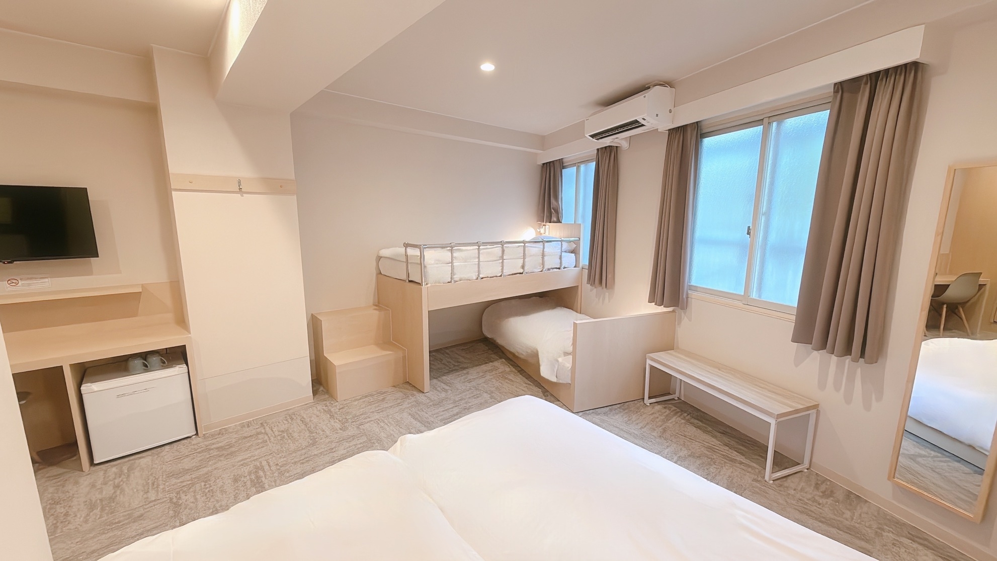 ※8月1日をもって、浴衣の貸し出しを終了いたしました。つきましては、寝間着はご自身でご用意いただきますようお願い申し上げます。ご理解のほど、よろしくお願いいたします。■最大5名様まで一緒に御宿泊可!ご家族やお友達同士でご利用いただけます。2段ベッド2台 シングルベッド1台ベッドサイズはともに 幅97センチ 長さ195センチ■設備・電子レンジ・IHコンロ・冷蔵庫・ミニキッチン・洗い場付浴室・独立型トイレ■ご宿泊のお客様には調理器具・食器をレンタルしております。チェックイン時にお申し付けください。※ご宿泊のお客様以外の入室は固くお断りいたします。■ご注意 館内全面禁煙。※電子タバコ・加熱式タバコを含む、すべての喫煙行為はお断りいたしますWi-Fiのみ※有線LANはございません。■清掃についてお部屋の清掃は3日ごとに行います。【毎 日】タオル交換 ゴミ回収★朝10時までに使用済タオル等をお出しください【3日毎 】シーツ交換 シャワーブース清掃■駐車場■予約不可。到着順にご案内。ワンボックス不可。サイズ:1690×4245まで。15時から10時:1,200円。10時から15時:800円近隣コインパーキングあります※提携なし■コインランドリー24時間利用可能※有料■徒歩2分圏内に、コンビニが3軒ございます。◆アクセス◆名城線東別院駅 2番出入り口目の前。徒歩0分。