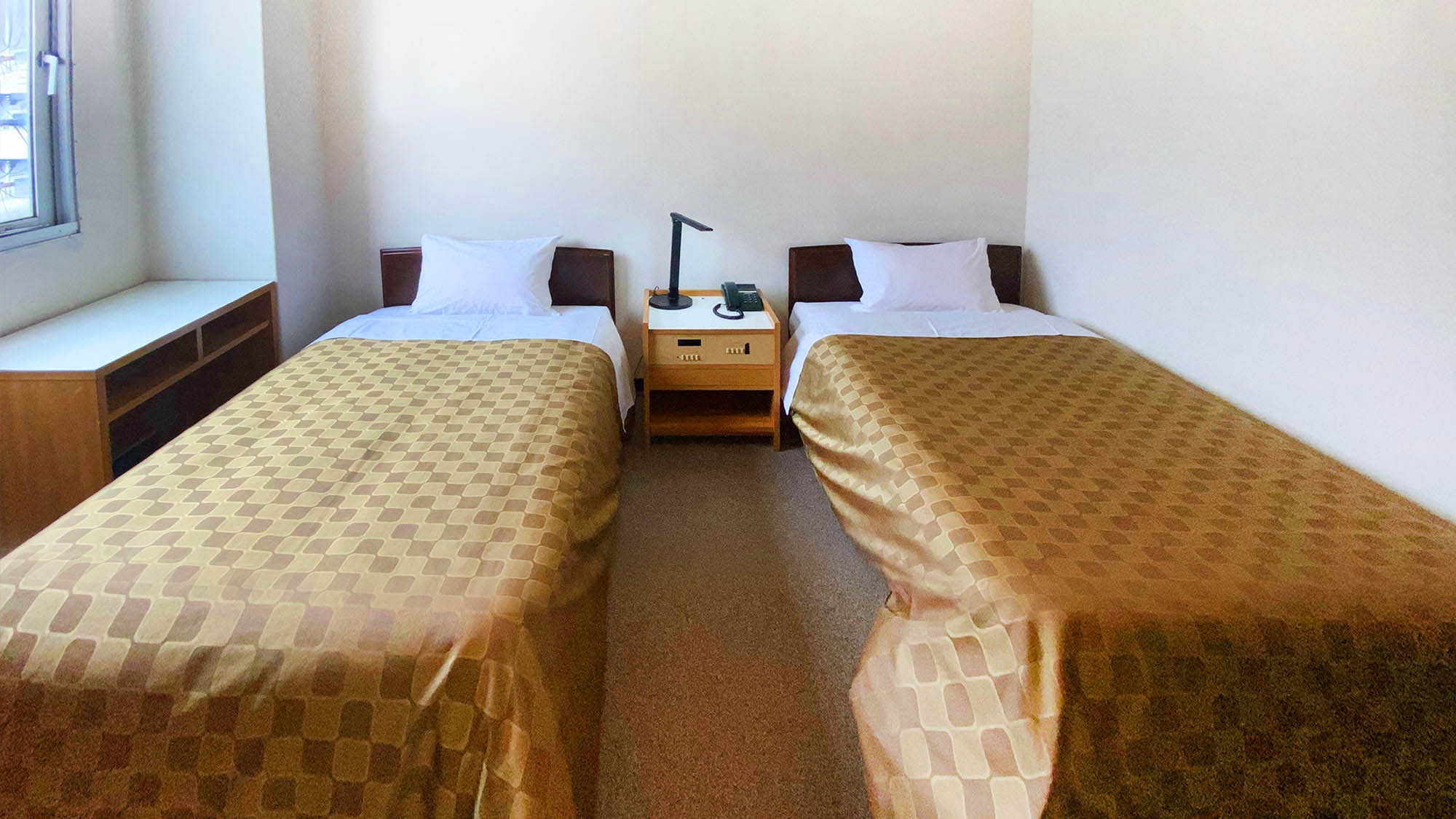 ダブルルームまたはツインルームのどちらかのお部屋にご案内いたします。