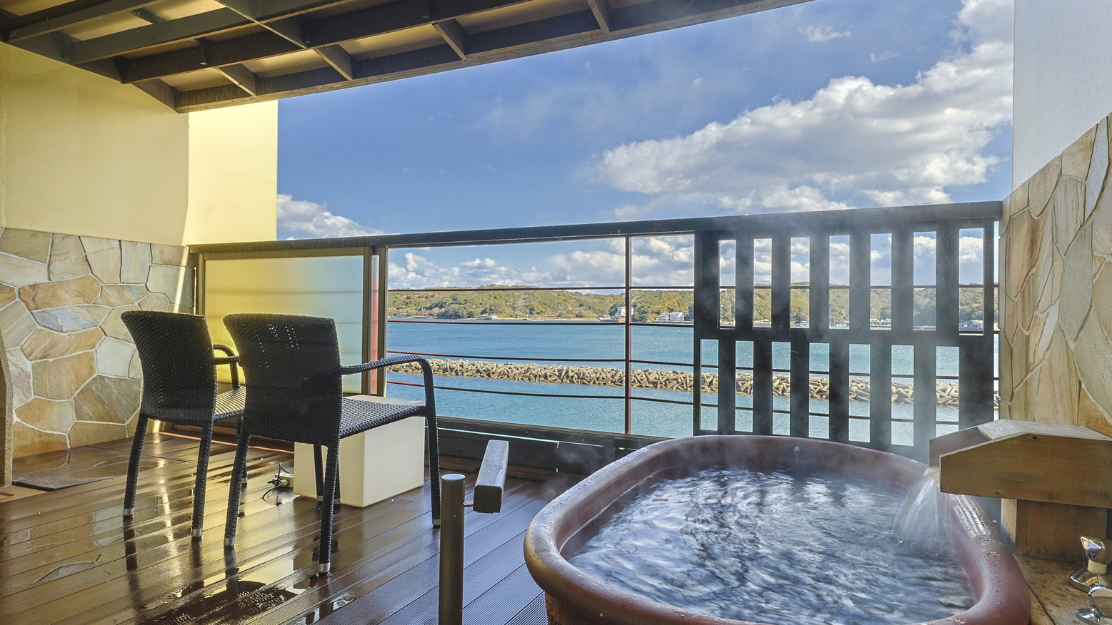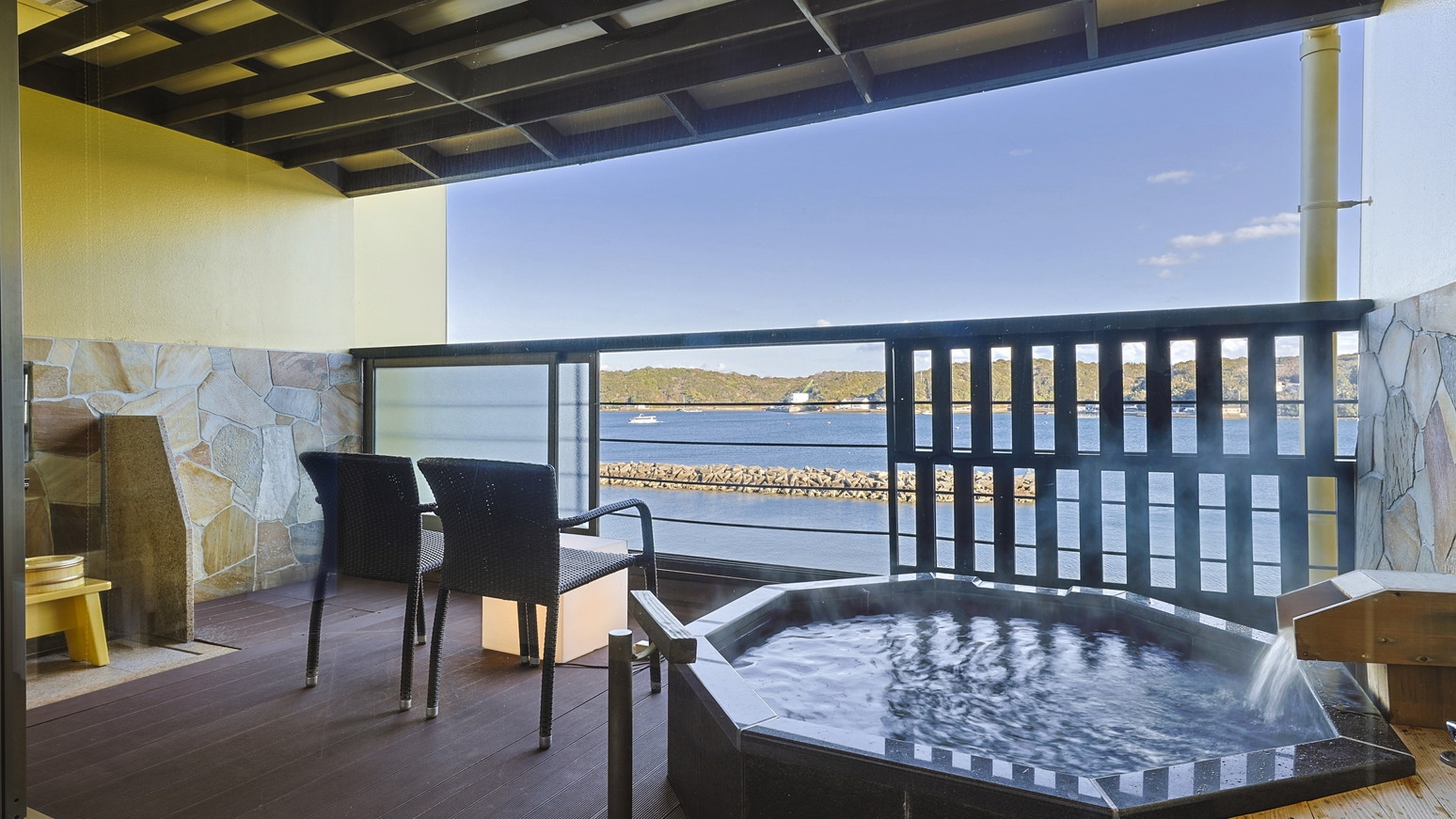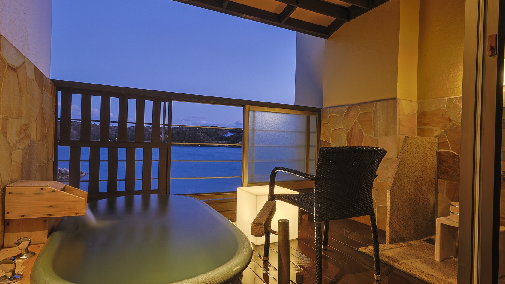 露天風呂付き客室で海と星空を眺めながら癒しの時間を過ごしてみてはいかがですか。