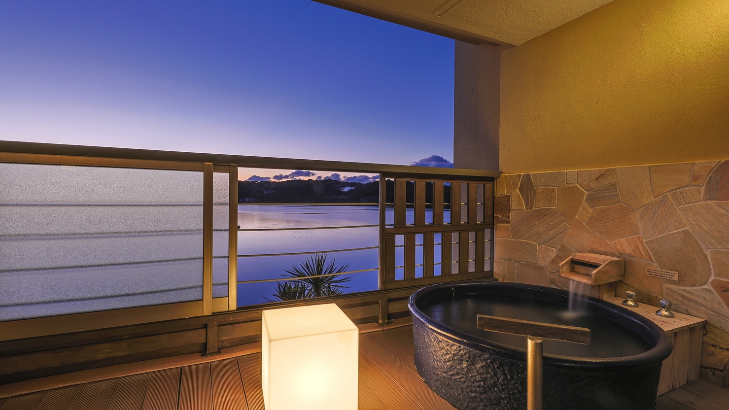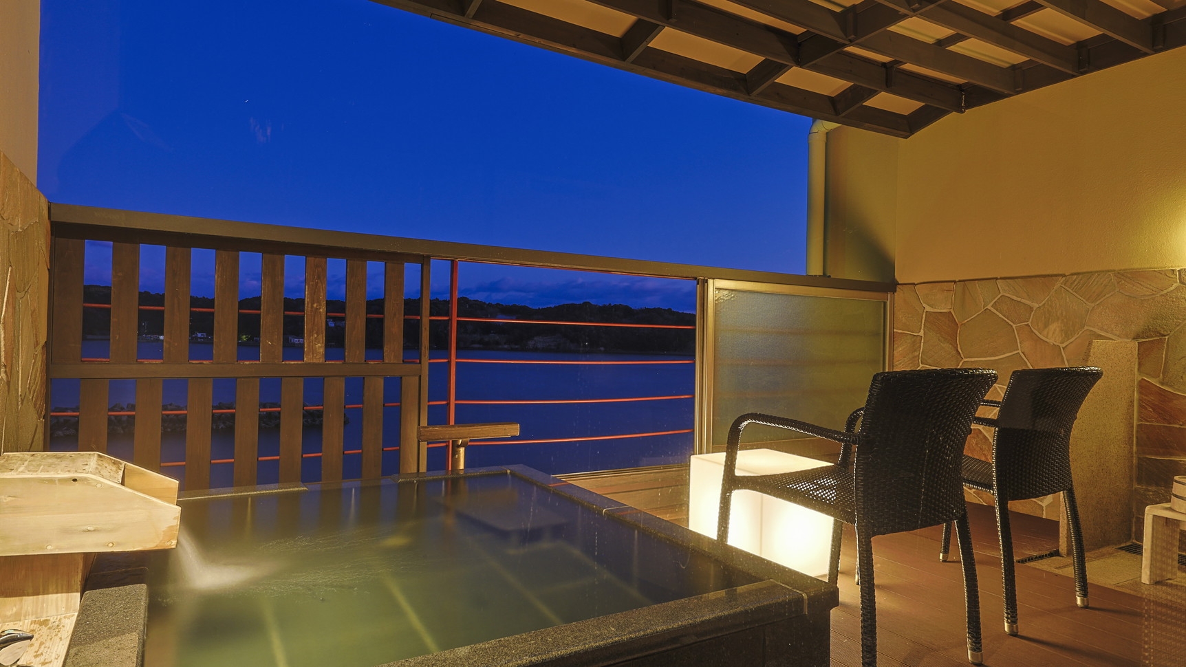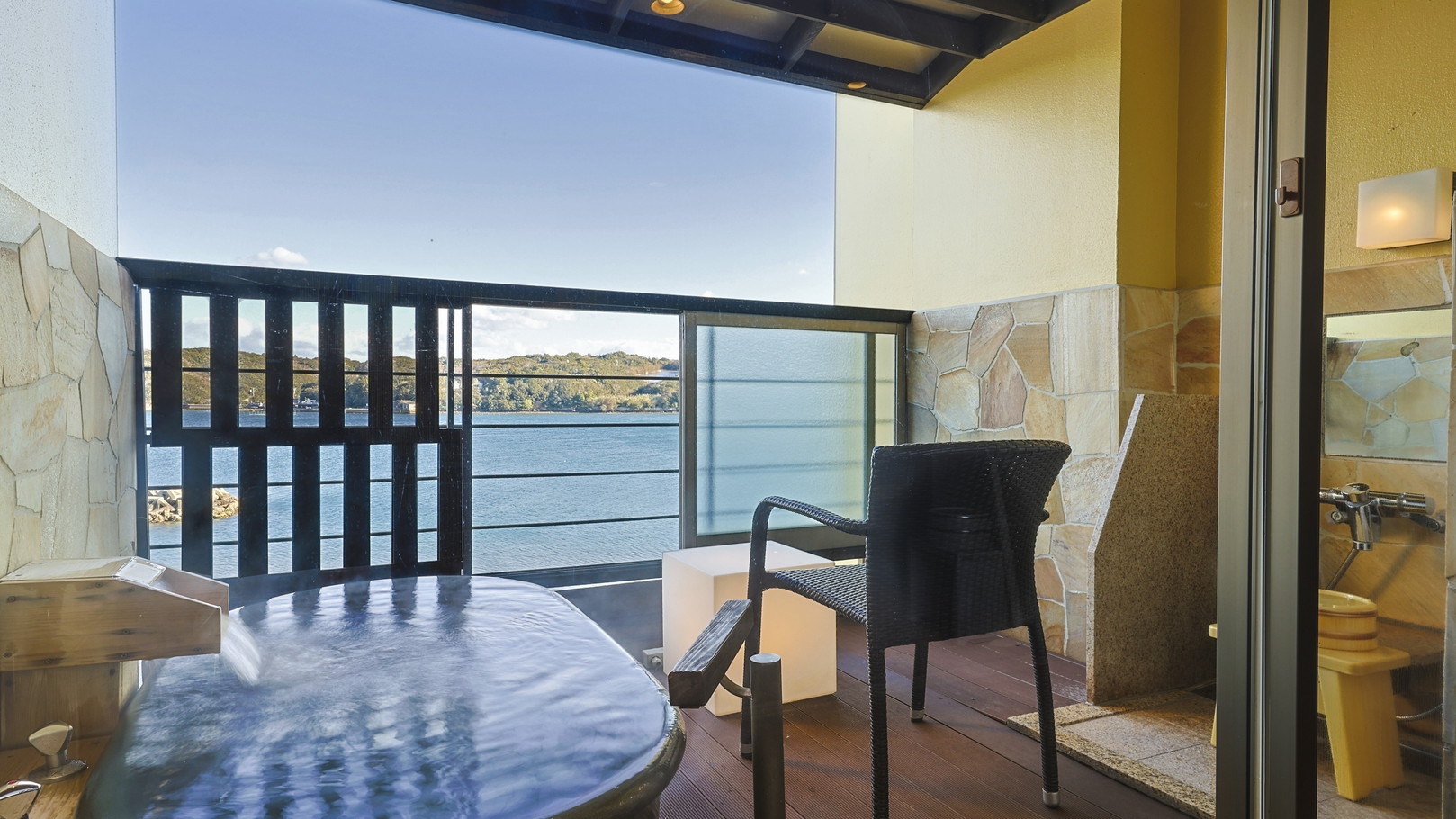 露天風呂付き客室で海と星空を眺めながら癒しの時間を過ごしてみてはいかがですか。