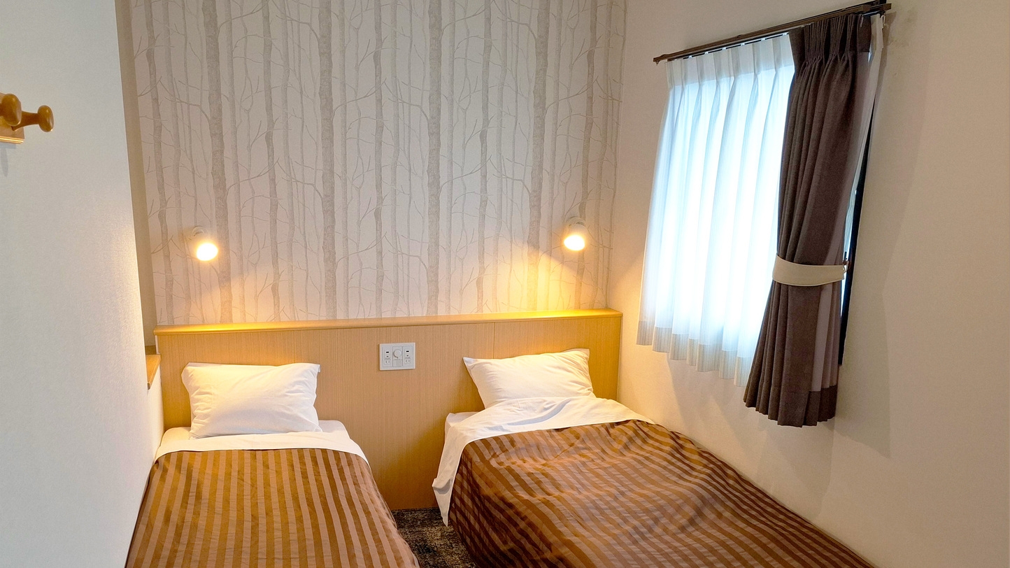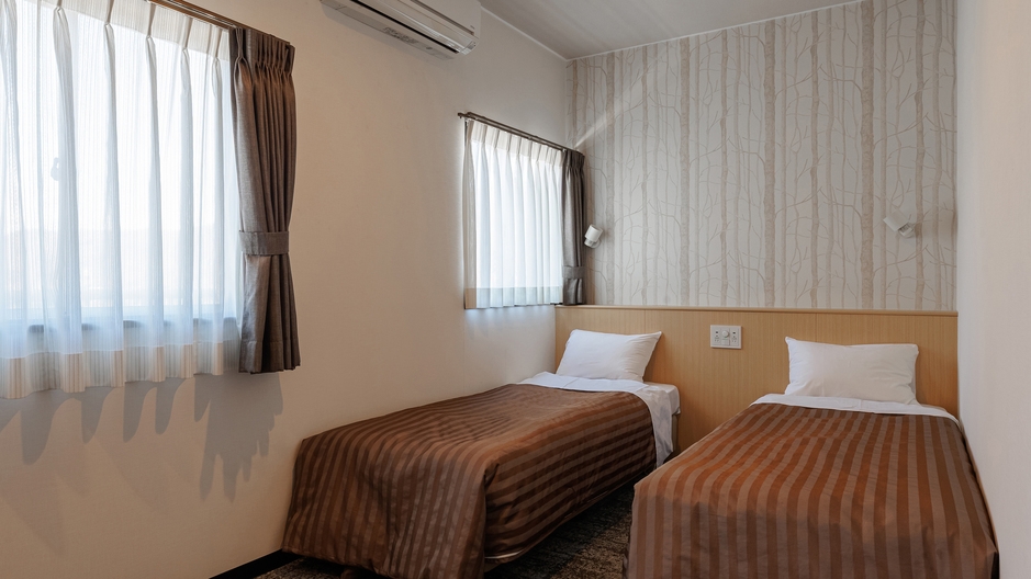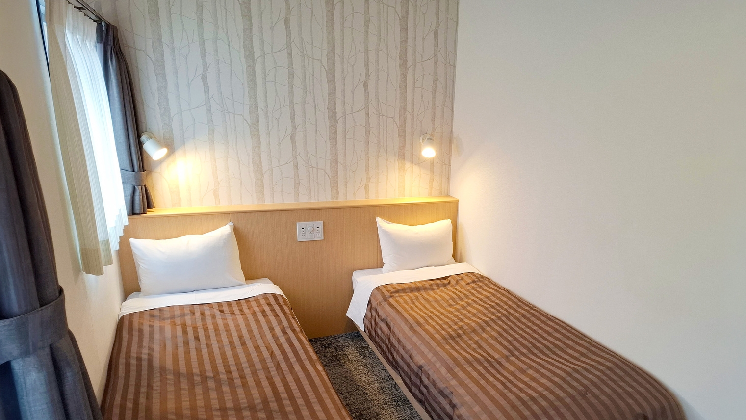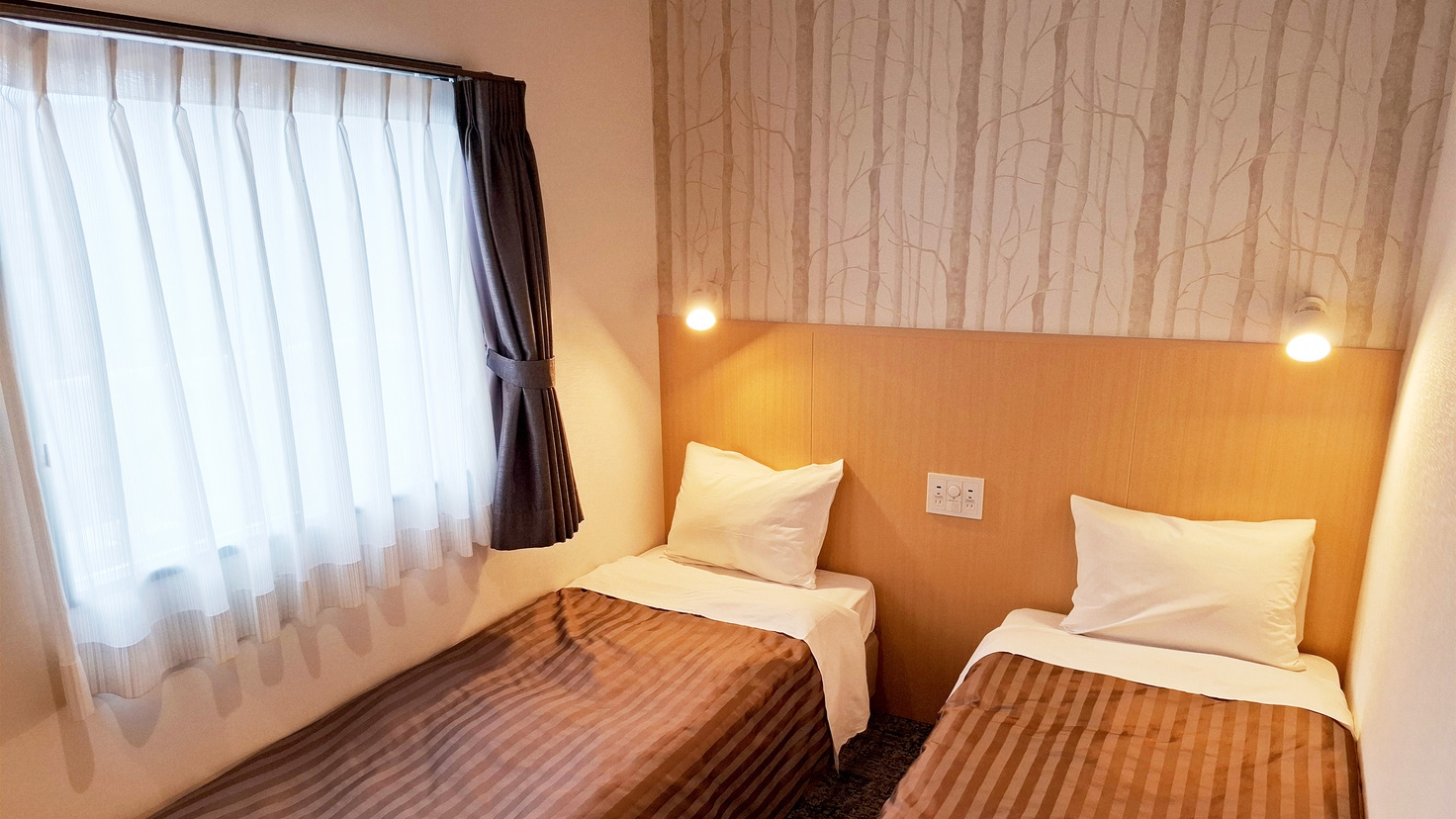洋室ツイン客室となります。ベ 街側の客室となりますので、川の眺望は望めません。エレベーターから遠くのお部屋になります。 お風呂は大浴場をご利用ください。※禁煙室