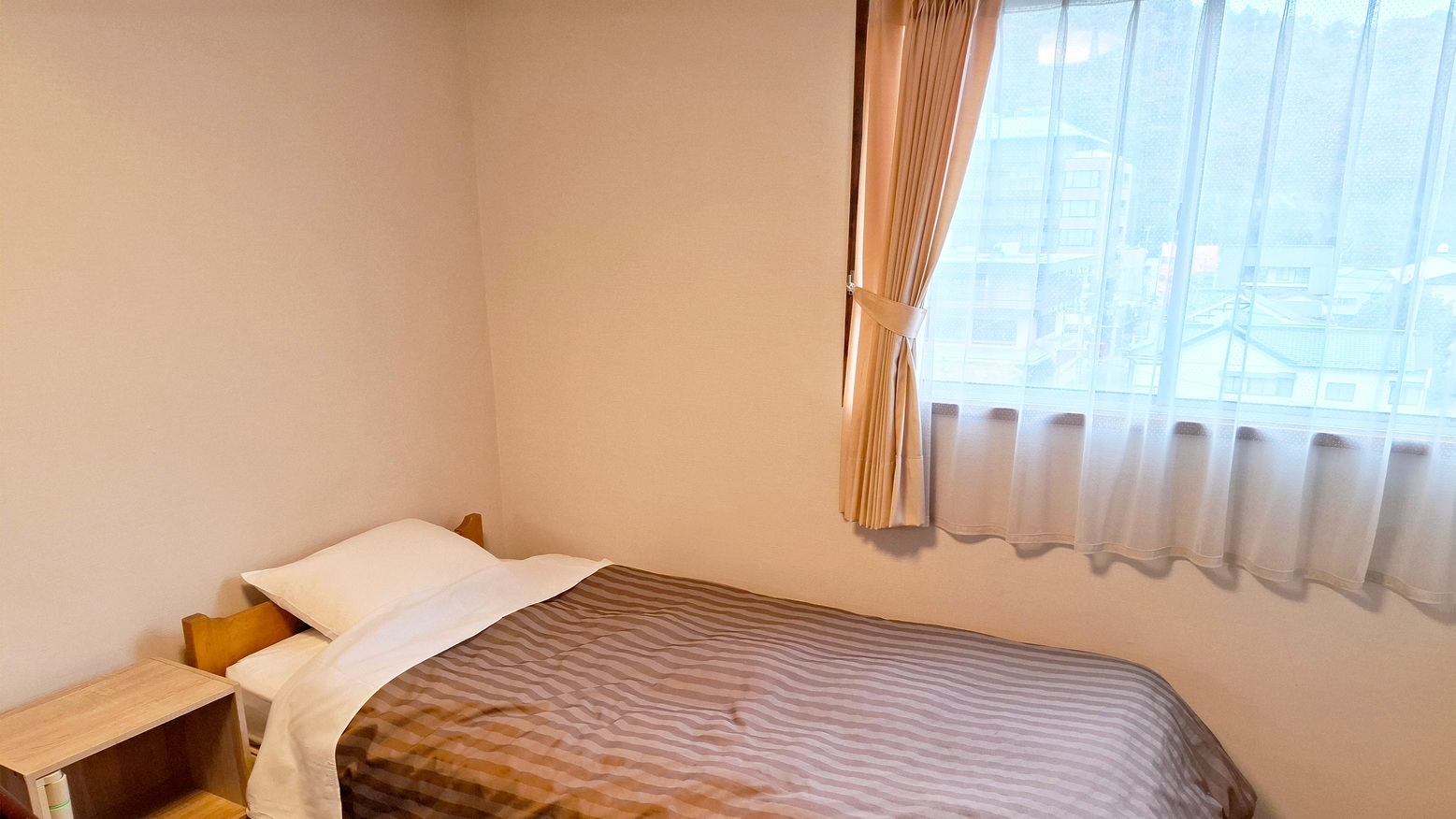 洋室ベッド1台のお部屋になります。 約3畳程の広さで、お部屋にお風呂がございませんので大浴場をご利用ください。お部屋からの眺望は望めません。※禁煙室