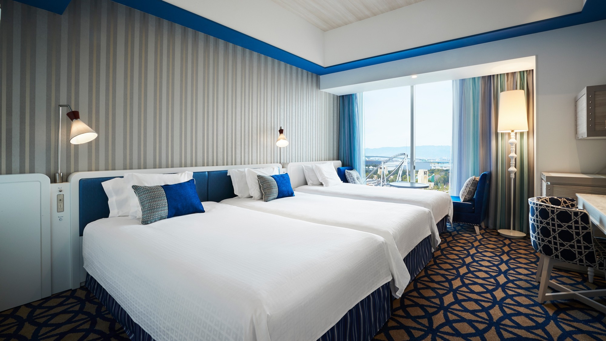 ◆白と青のさわやかな客室◆角部屋◆バスルームとトイレが独立したセパレートタイプ◆3名でご利用の場合はエキストラベッドでのご用意となります。