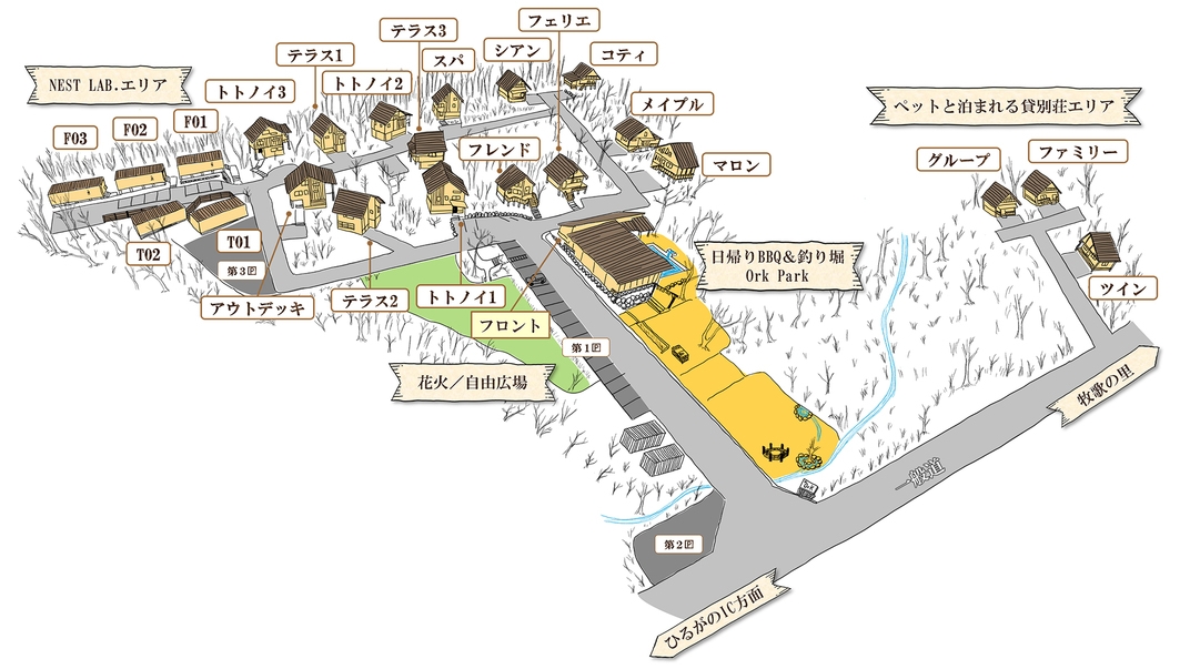 ●冬季期間はBBQ・花火・焚火は禁止になります。また、OrkPark(釣り堀・カフェ)は営業しておりません。