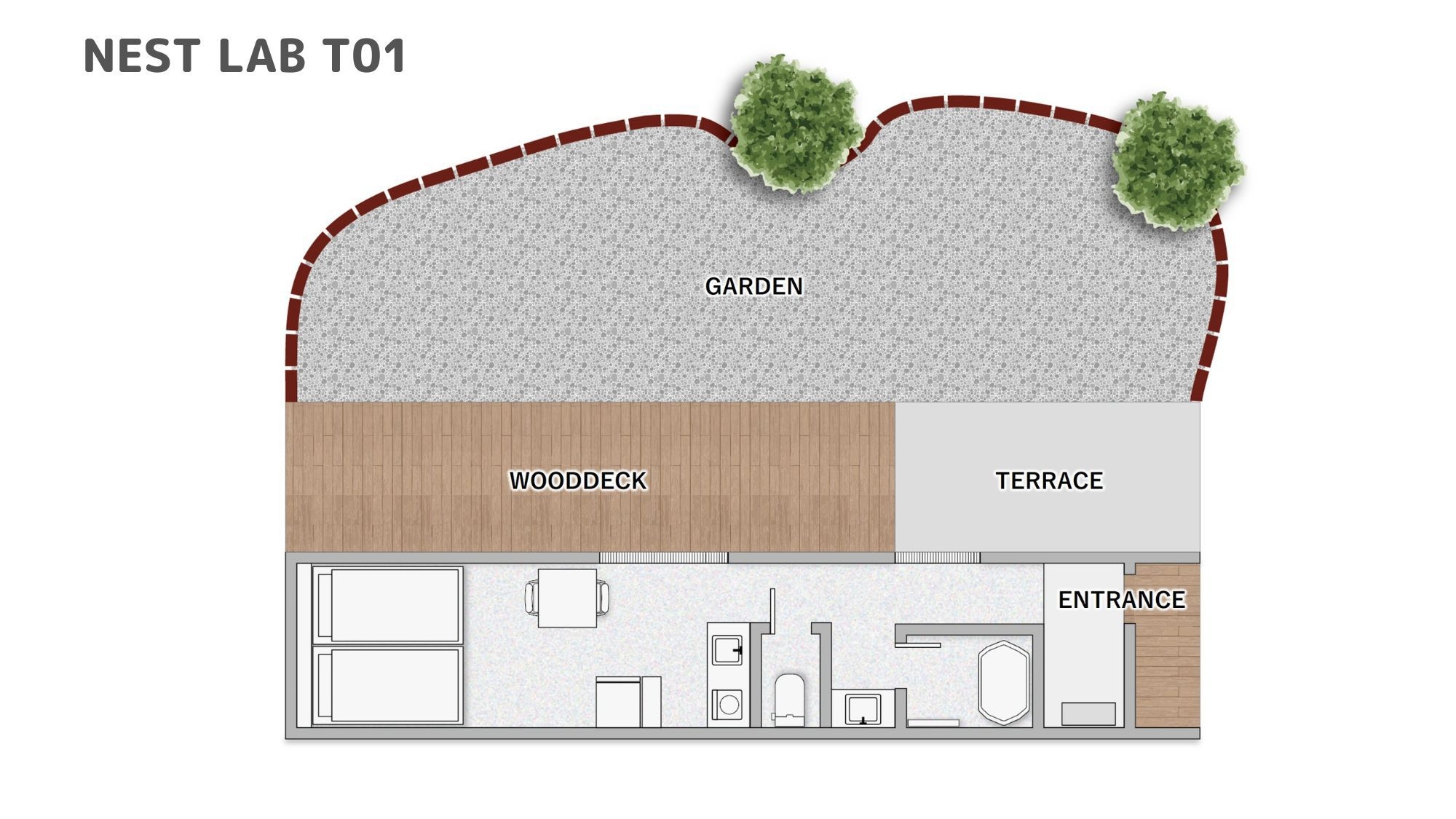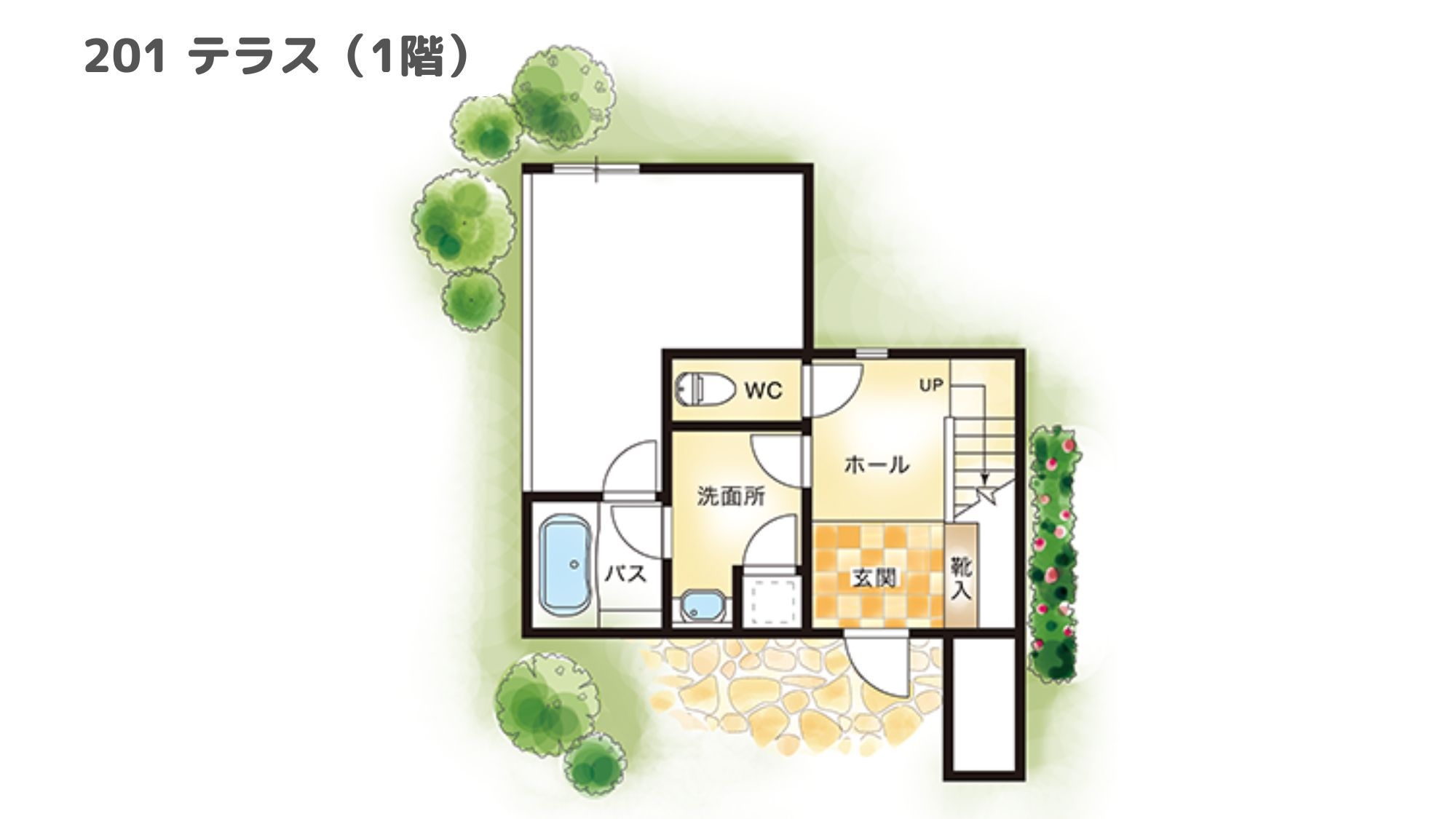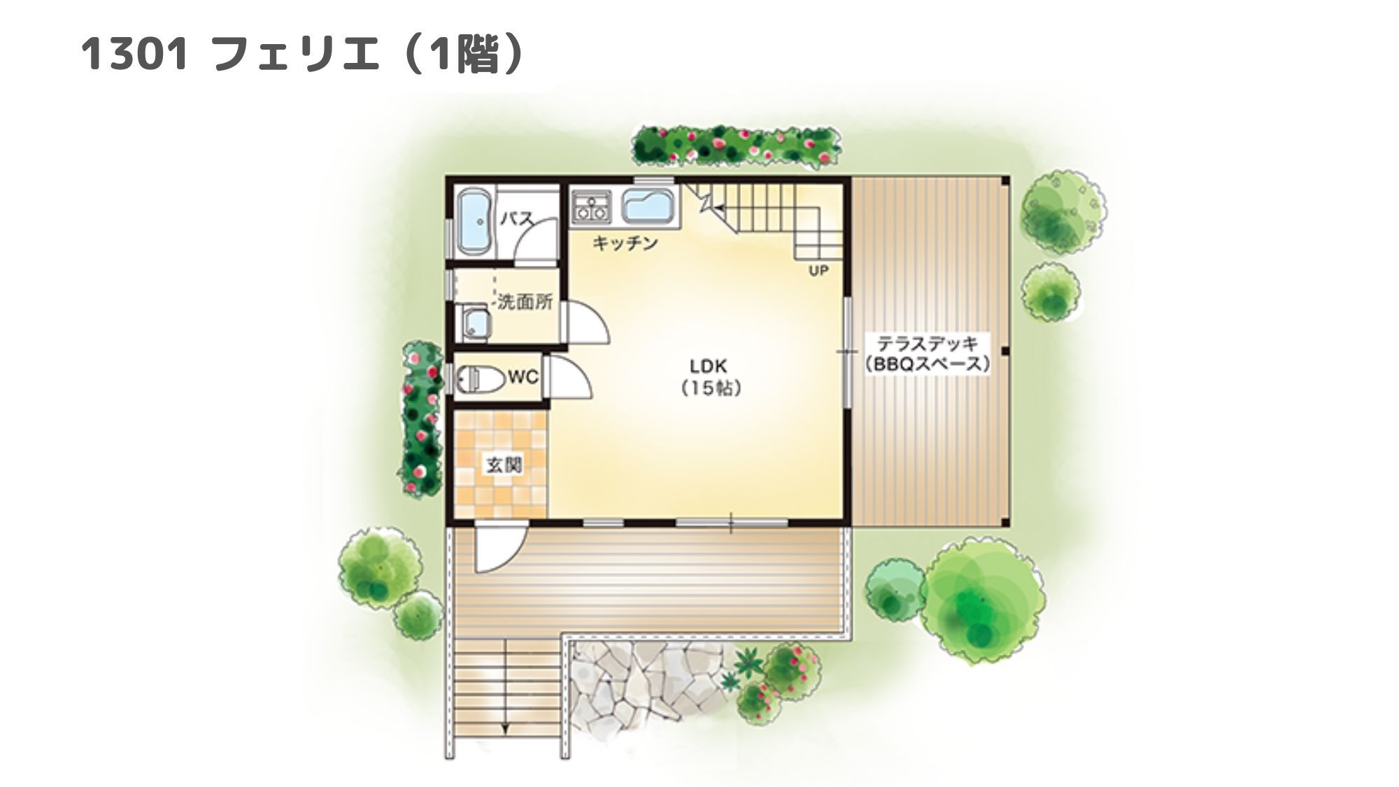 大切な人と寄り添うひとときを送るコンパクトな空間。■LDK・ロフト寝室・バス・トイレ・洗面所・テラスデッキ ★ペット宿泊可
