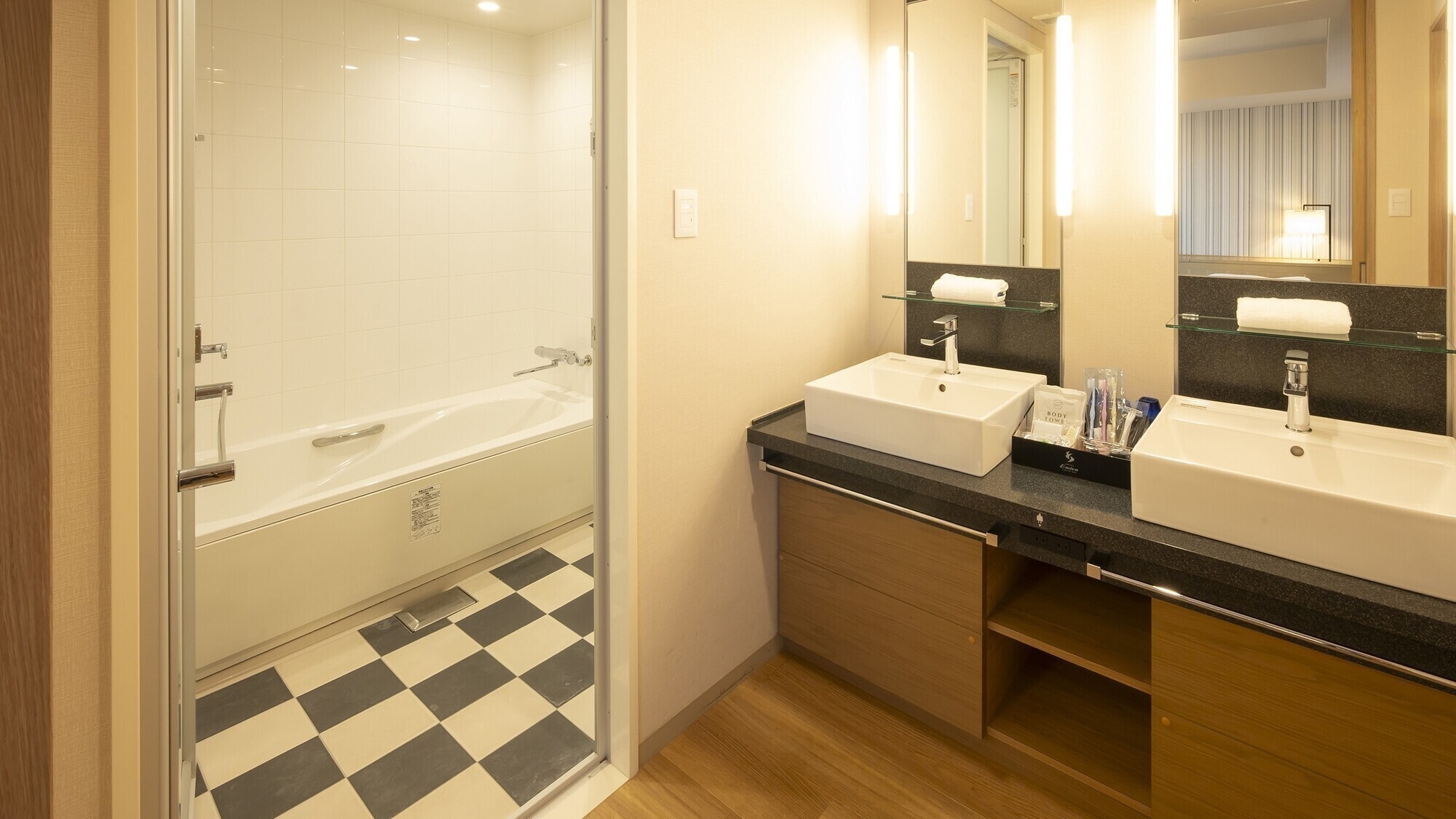 洗い場付きの独立型バスルーム(洗面台・トイレ別)28平米禁煙 ※3名様でご利用の際はソファベッドを 1台ご用意いたします。