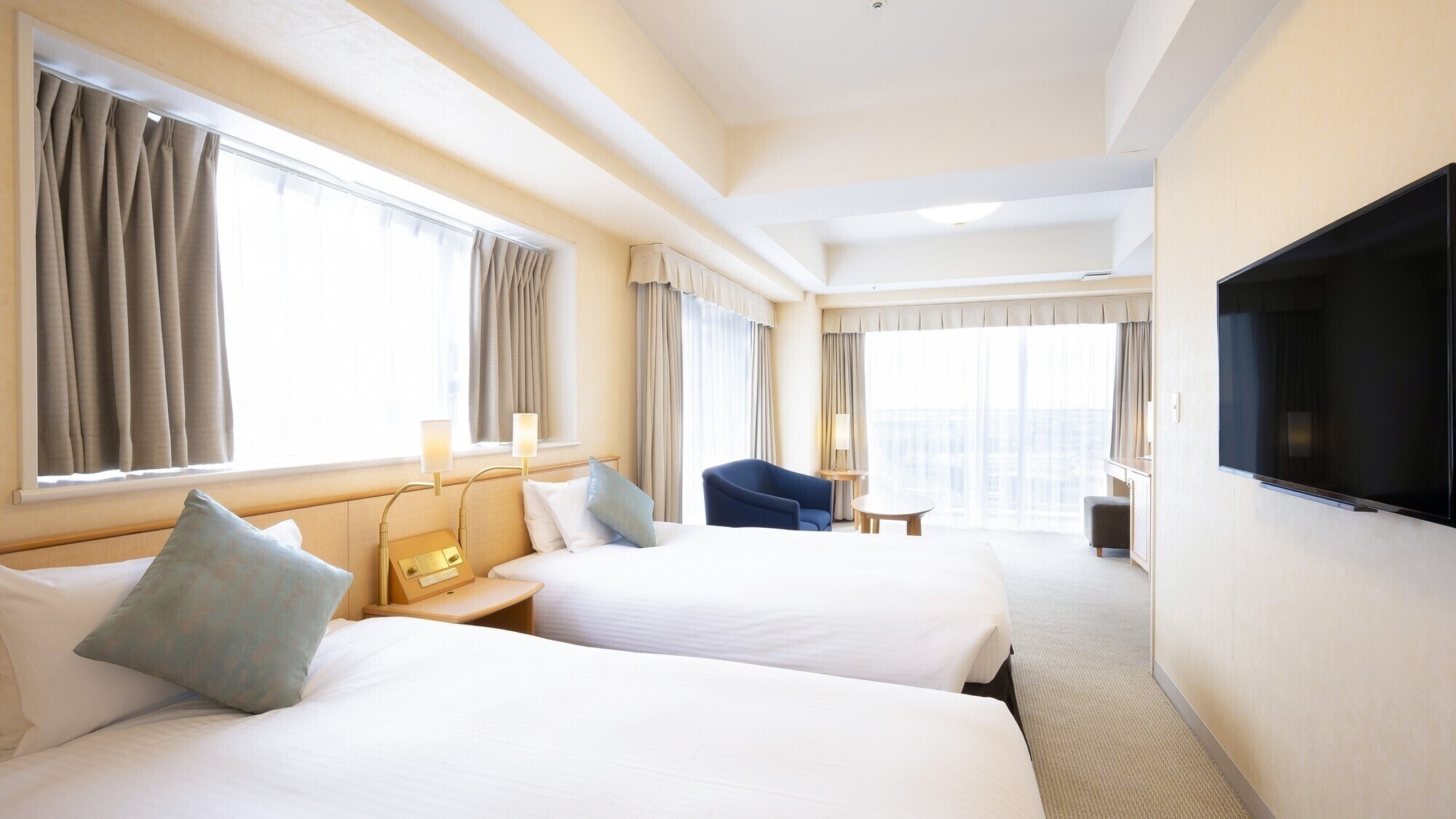 18階以上に位置し、56m2の客室は、全室バルコニー付きで明るく開放感溢れるリラックス空間。ReFa製品を常設で 、非日常的な至福のひと時をお楽しみください。