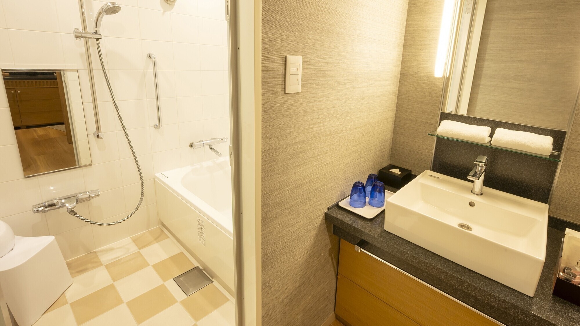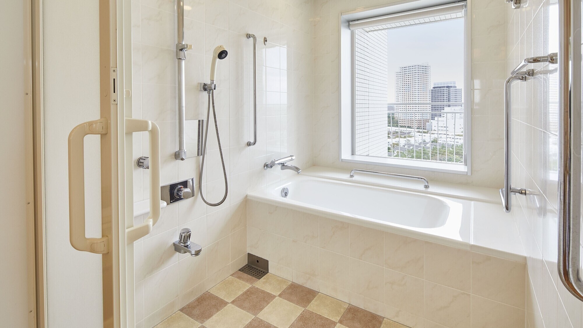 44平米禁煙・窓に面した洗い場付きバスルーム ・車椅子のままでご利用いただける洗面台 ・手すり付きトイレ