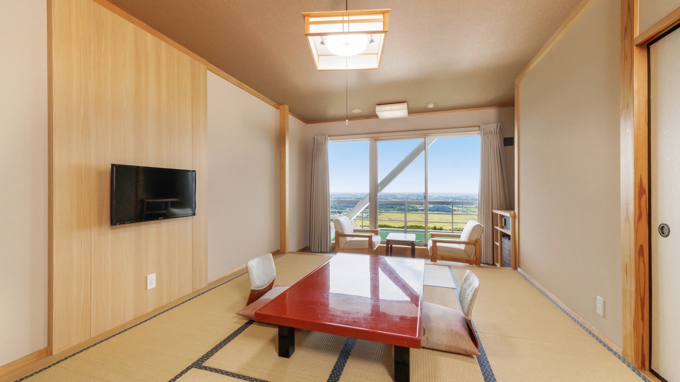 10畳和室と、ゆっくりお寛ぎいただけるソファーがあるリビングの付いたお部屋です。 関東平野を望む趣あふれる展望風呂がございます。
