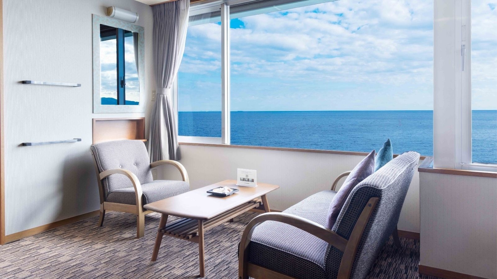 全室オーシャンビューのお部屋からは刻々と移りゆく美しい景観をお楽しみいただけます。