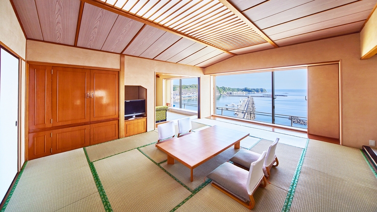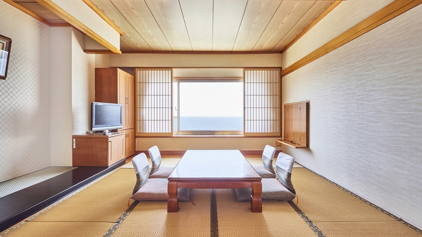 オーシャンビュー(和室10畳)のお部屋となります。客室毎に内装が異なります。あらかじめ御了承ください。
