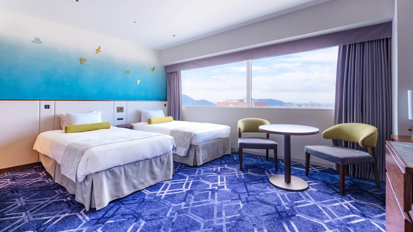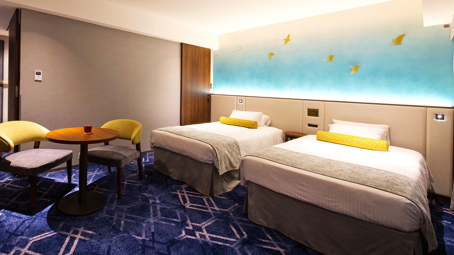 クラブラウンジアクセス付 ■「白鷺」のガラスアートが特徴的でバストイレ別の快適性の高い客室 ■設備:ベッド110cm×203cm×2台、30.2平米、禁煙