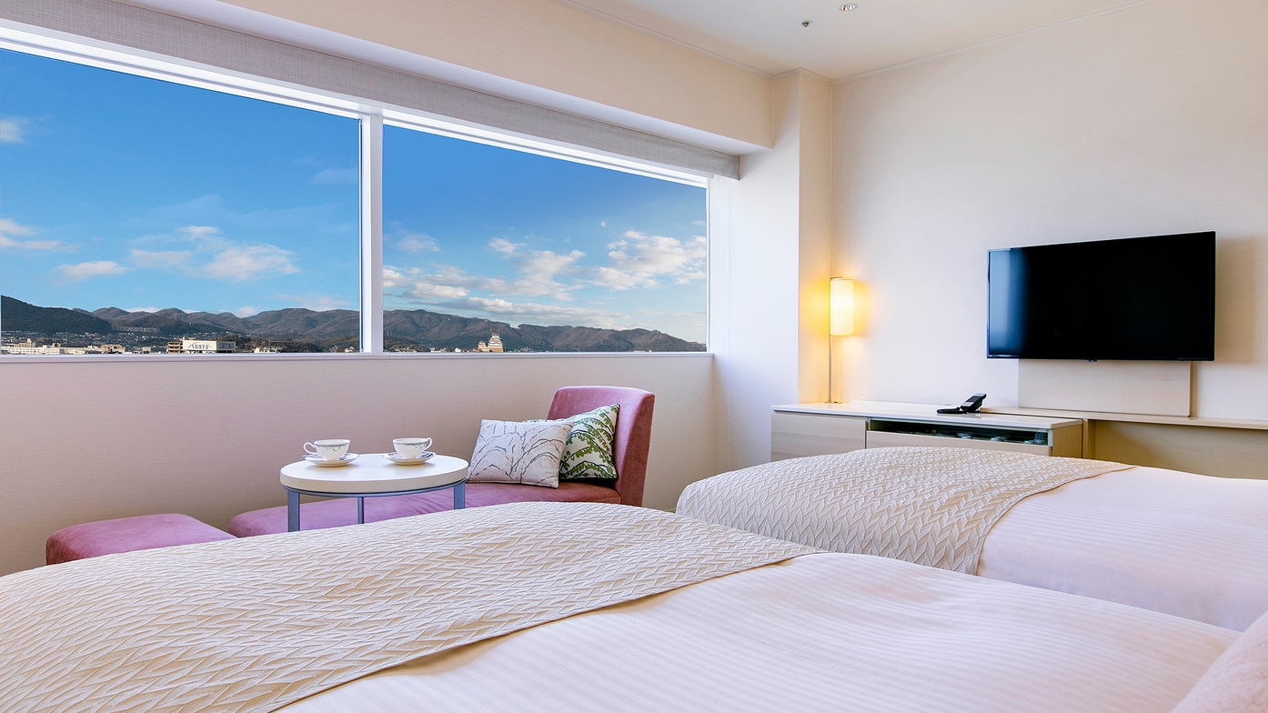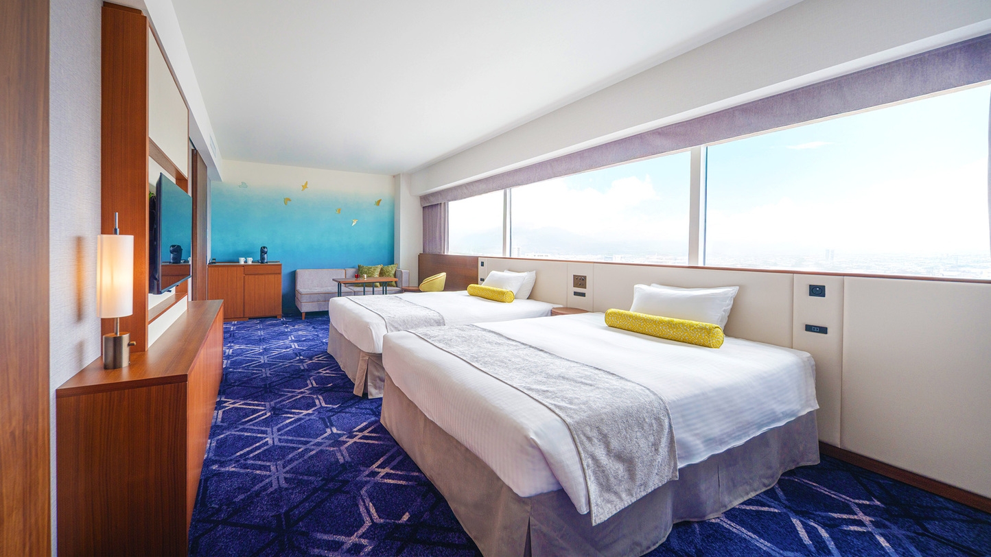 クラブラウンジアクセス付 ■1室限定の最上階特別室(パノラマビュー) ■ベッド:120cm×2【シモンズ製】、92.5平米 ※エキストラベッド追加可(最大1台)