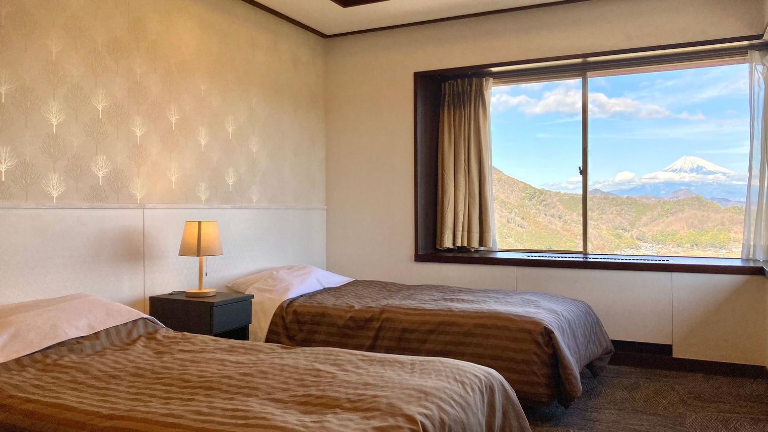 客室からは、世界遺産にも登録される美しい富士山の姿を望むことができ、時間帯ごとに変わる表情をゆったり楽しめます。